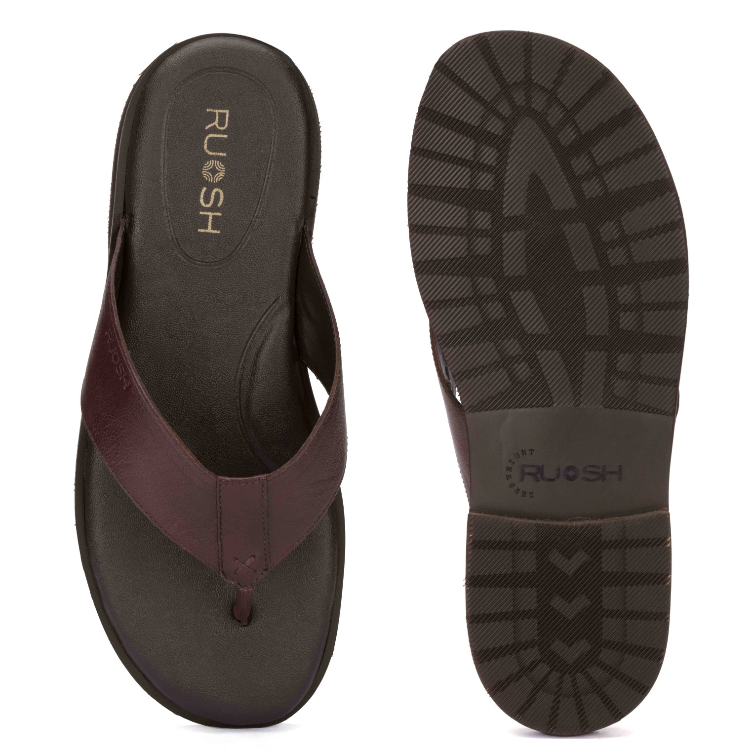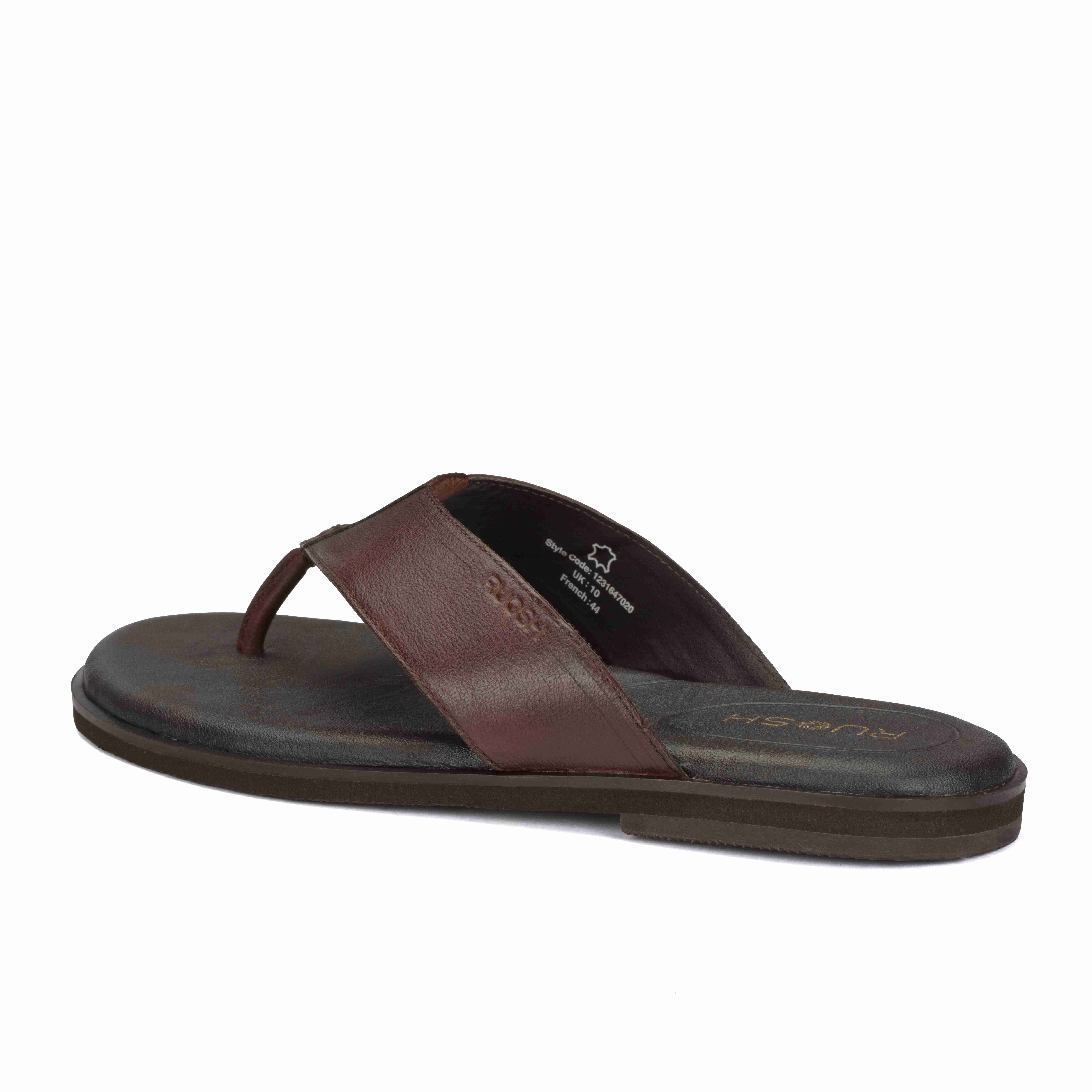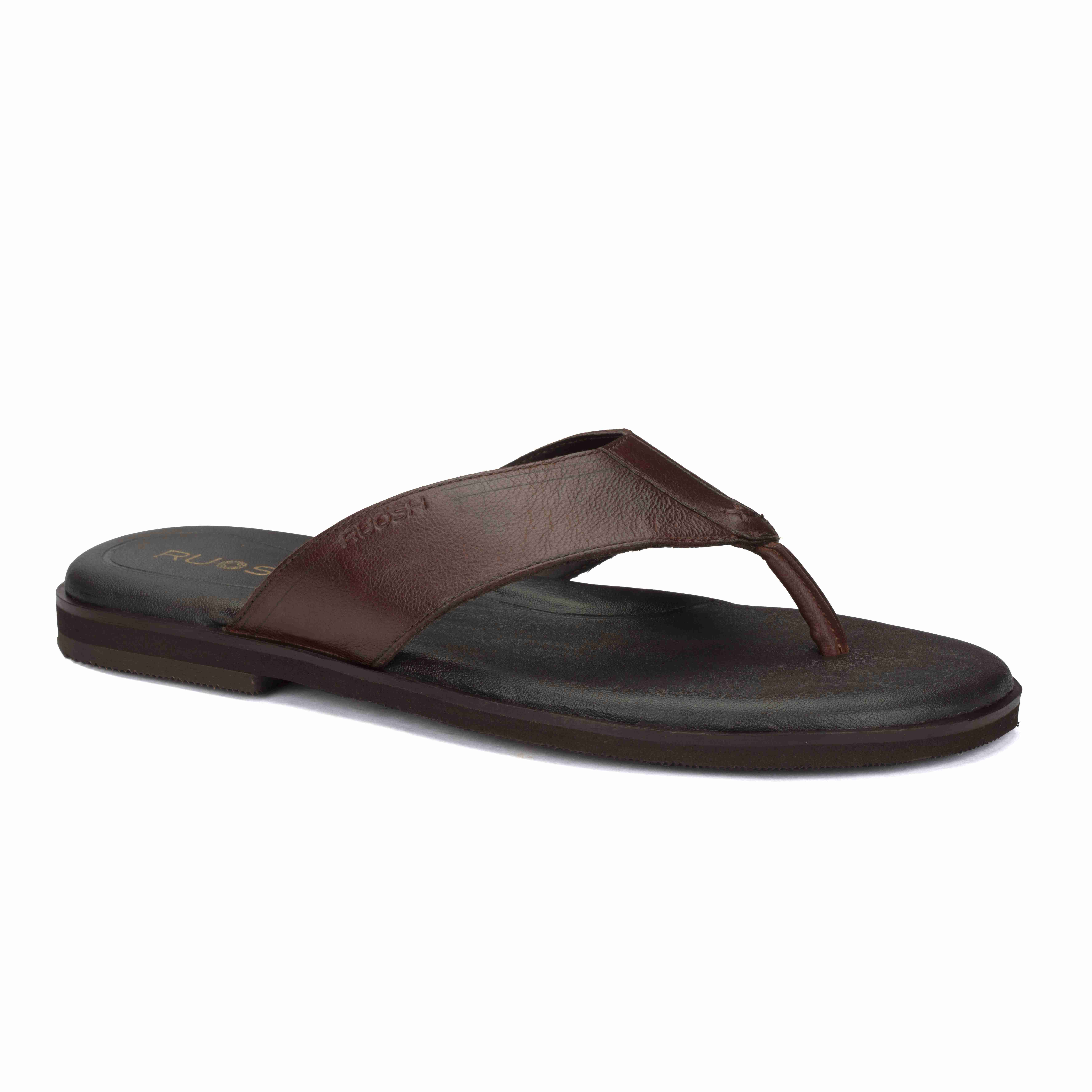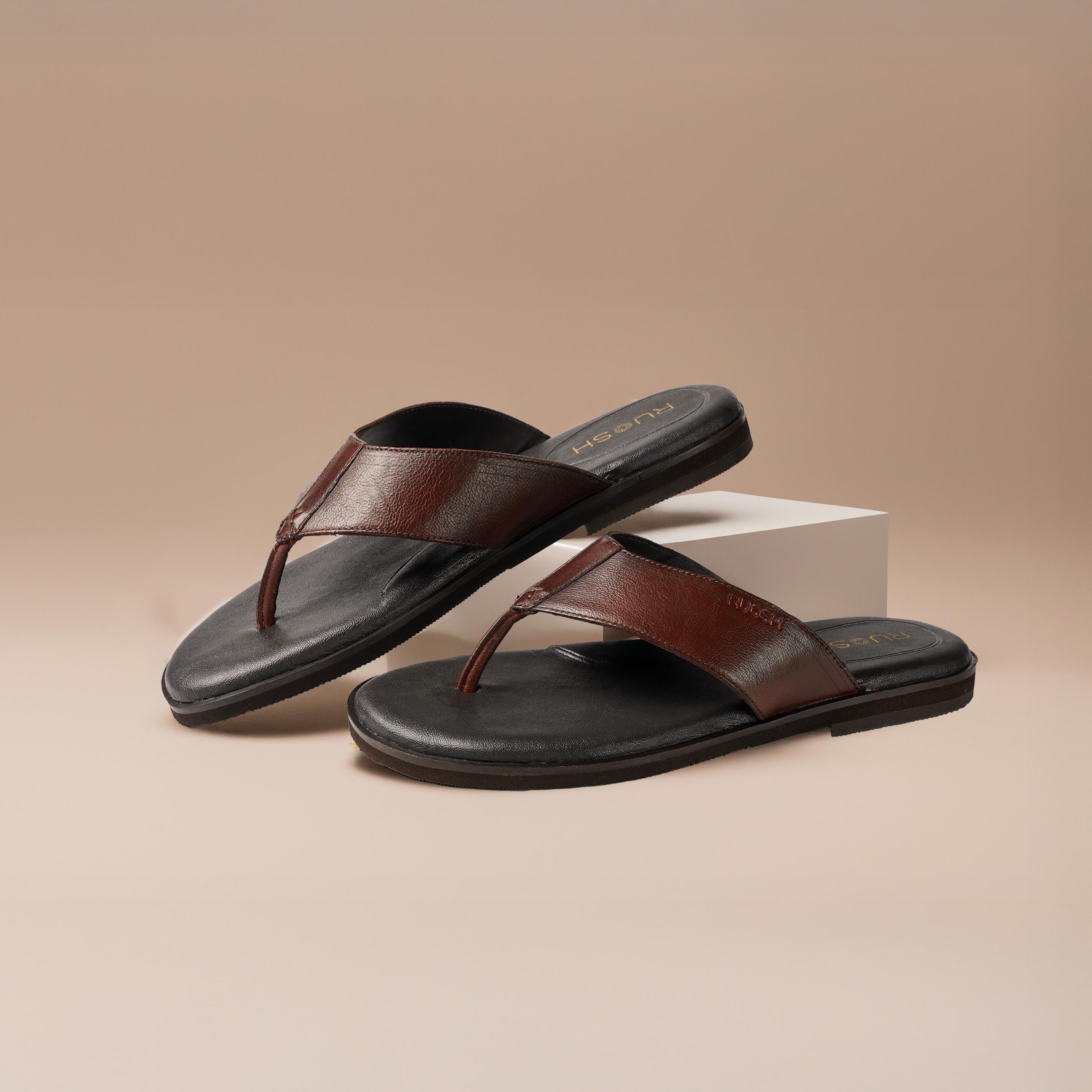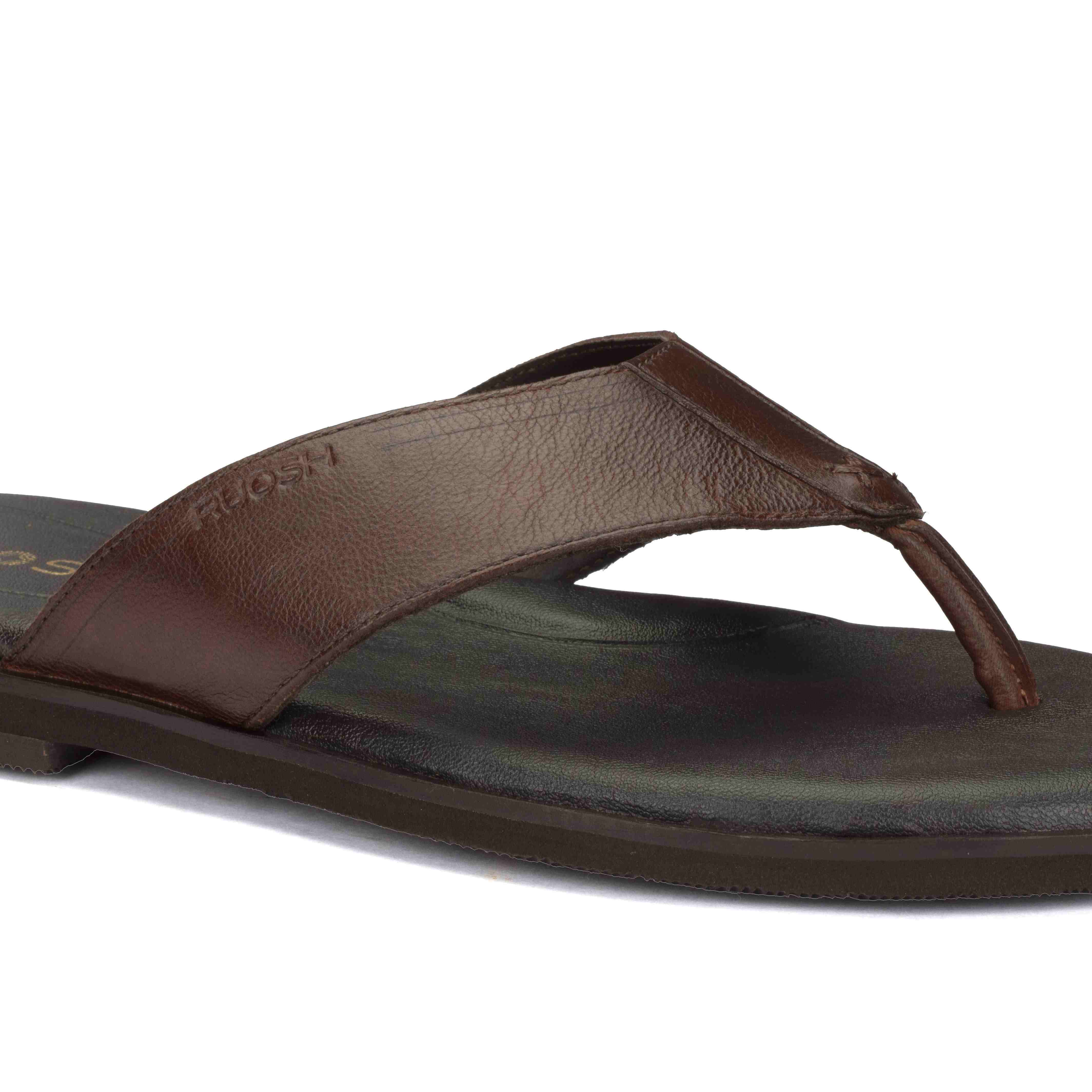 Relax in comfort with Ruosh Brown Leather Sandals. The smooth leather upper offers a classic and versatile look. Easy slip-on design ensures effortless wear around home or outdoors. Lightweight EVA sole provides cushioning, flexibility, and dependable grip.