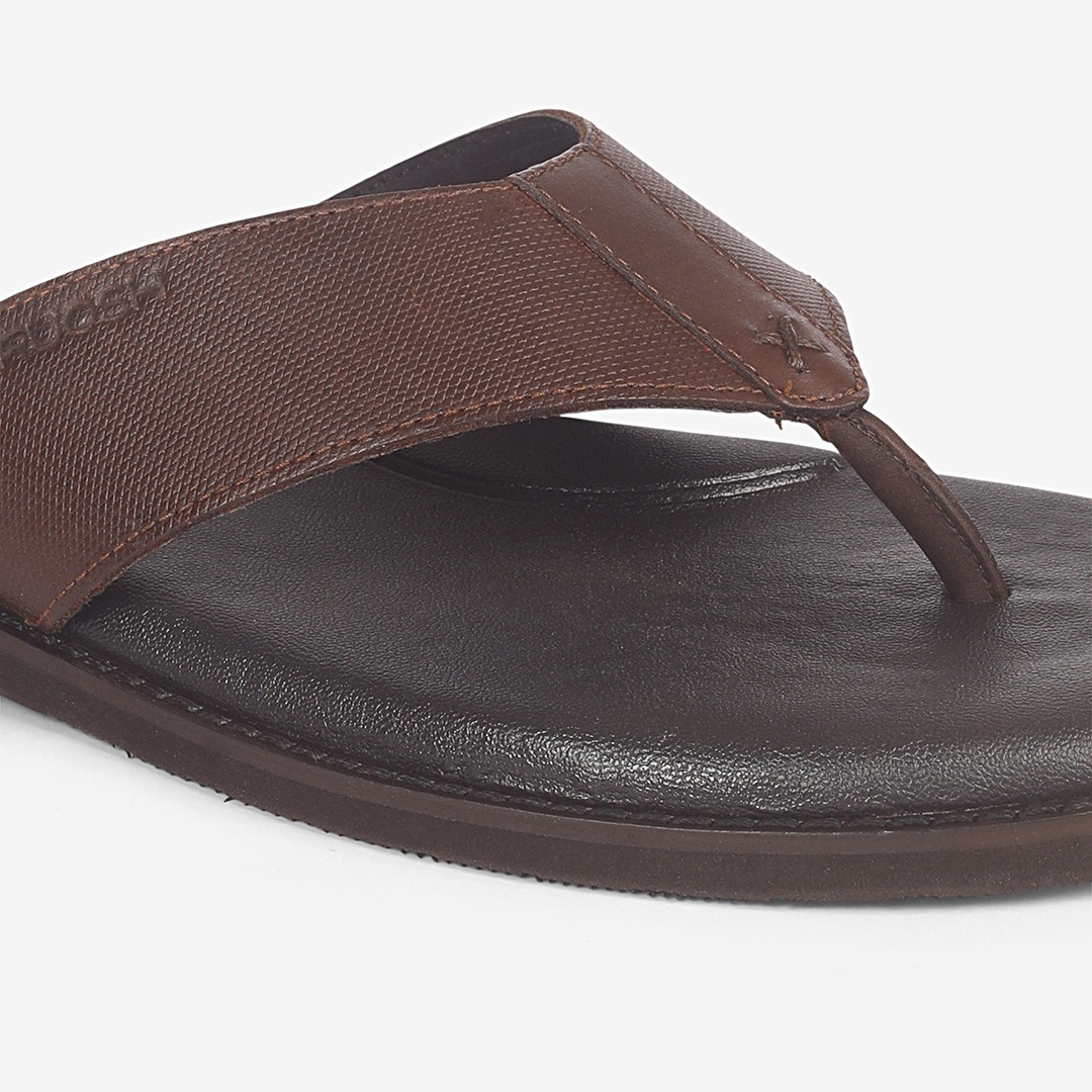 Crafted from genuine nubuck leather, these Ruosh Brown Sandals offer a soft, premium finish. The lightweight EVA sole ensures superior cushioning and all-day comfort. Designed for a secure fit with a relaxed, open profile. Perfect for effortless casual style with a refined touch.