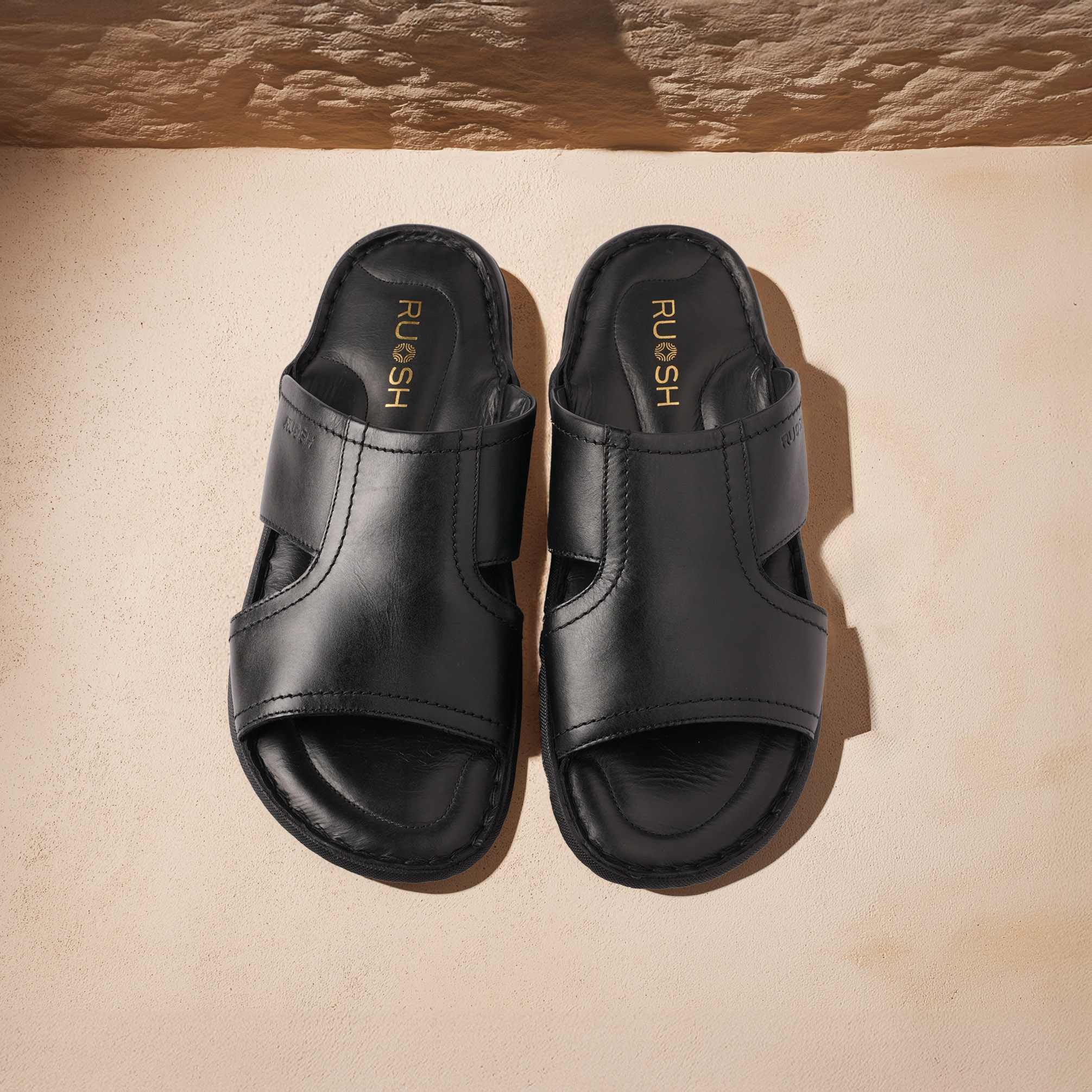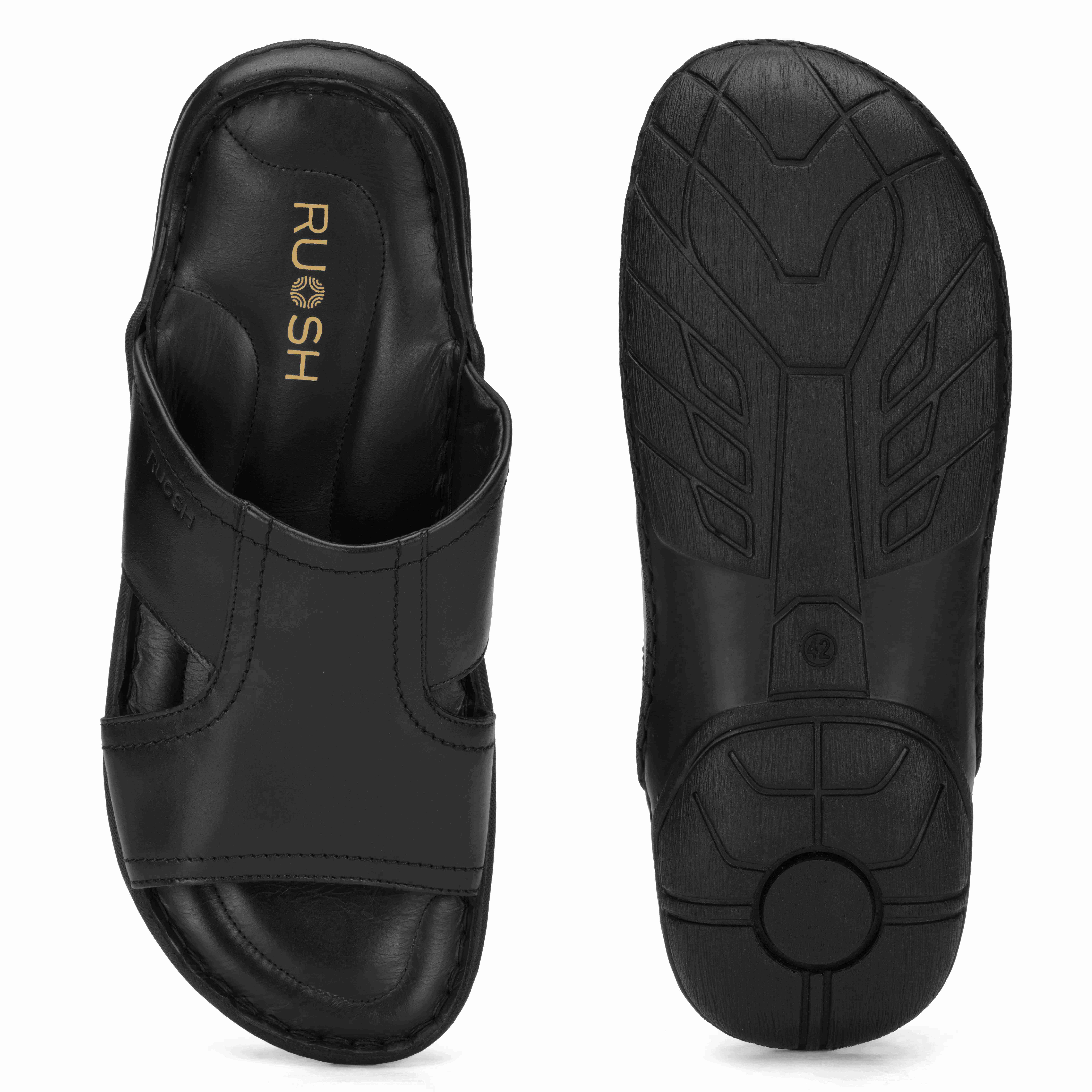 Enjoy everyday ease with Ruosh Black Sandals crafted from quality leather. The smooth finish delivers a clean, classic look. A durable PU sole provides steady comfort and grip. Perfect for relaxed wear with simple, timeless style.