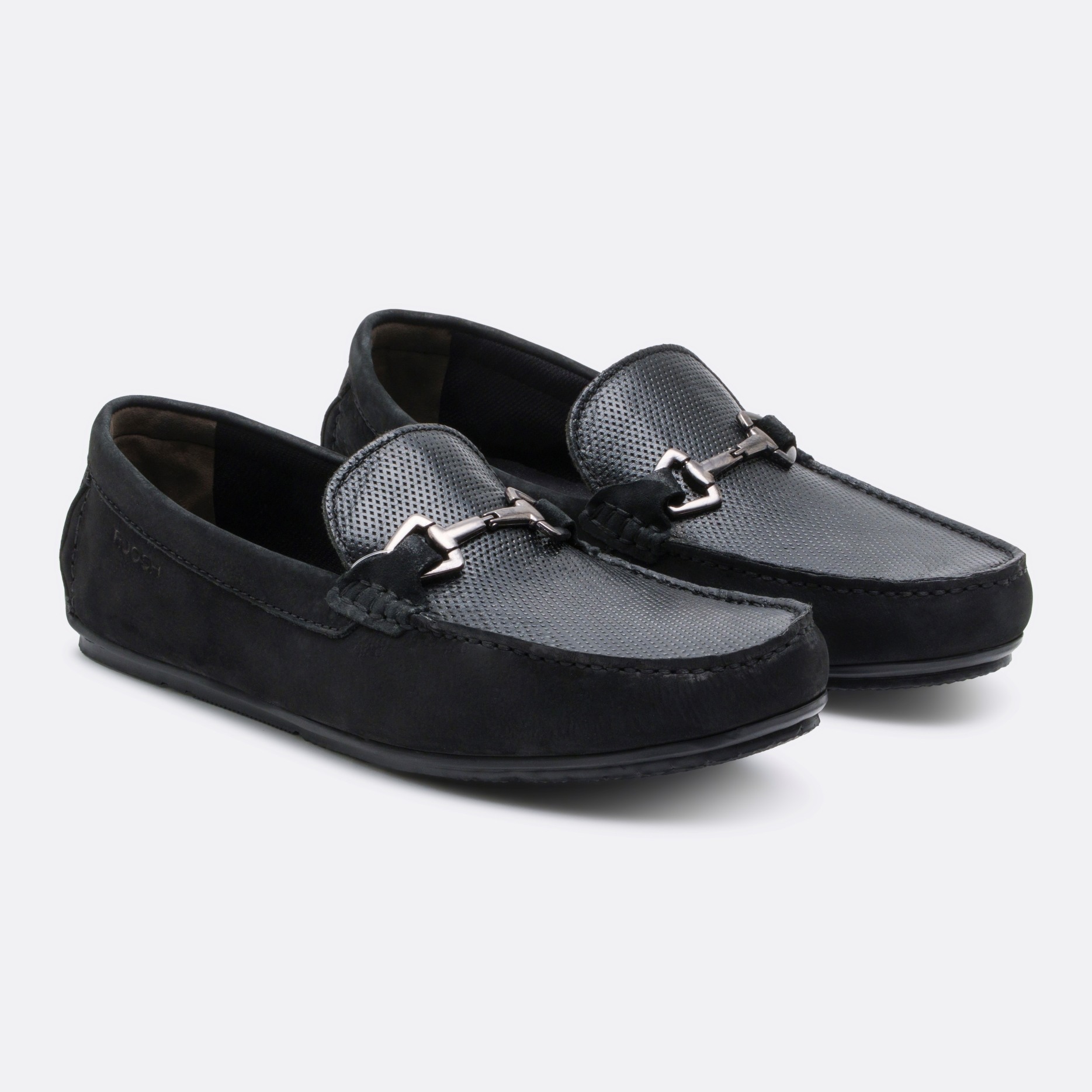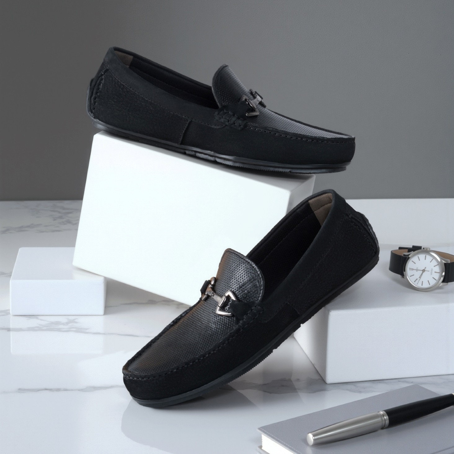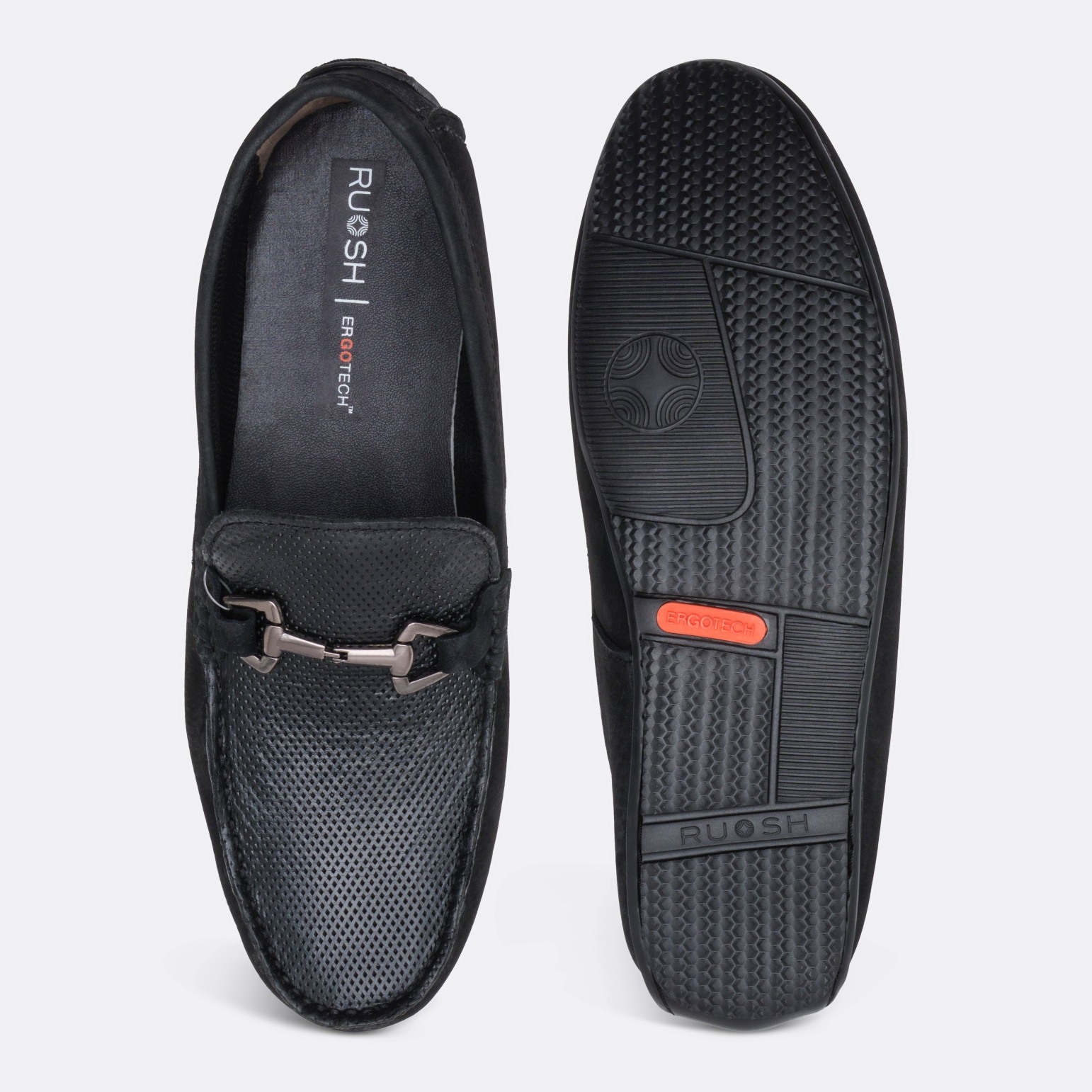 Crafted from genuine nubuck leather, these Ruosh Black Driver Shoes deliver a rich and premium finish. Lightweight EVA sole ensures superior comfort and flexibility. Slip-on design for effortless everyday wear. Perfect for refined smart-casual styling.