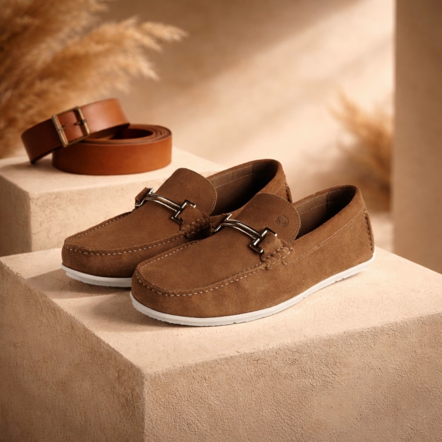 Step into effortless elegance with Tan Driver slip-ons in rich suede leather. The soft finish adds a touch of laid-back luxury. Set on a Eva sole for dependable comfort and durability. Ideal for stylish drives and smart casual days out.