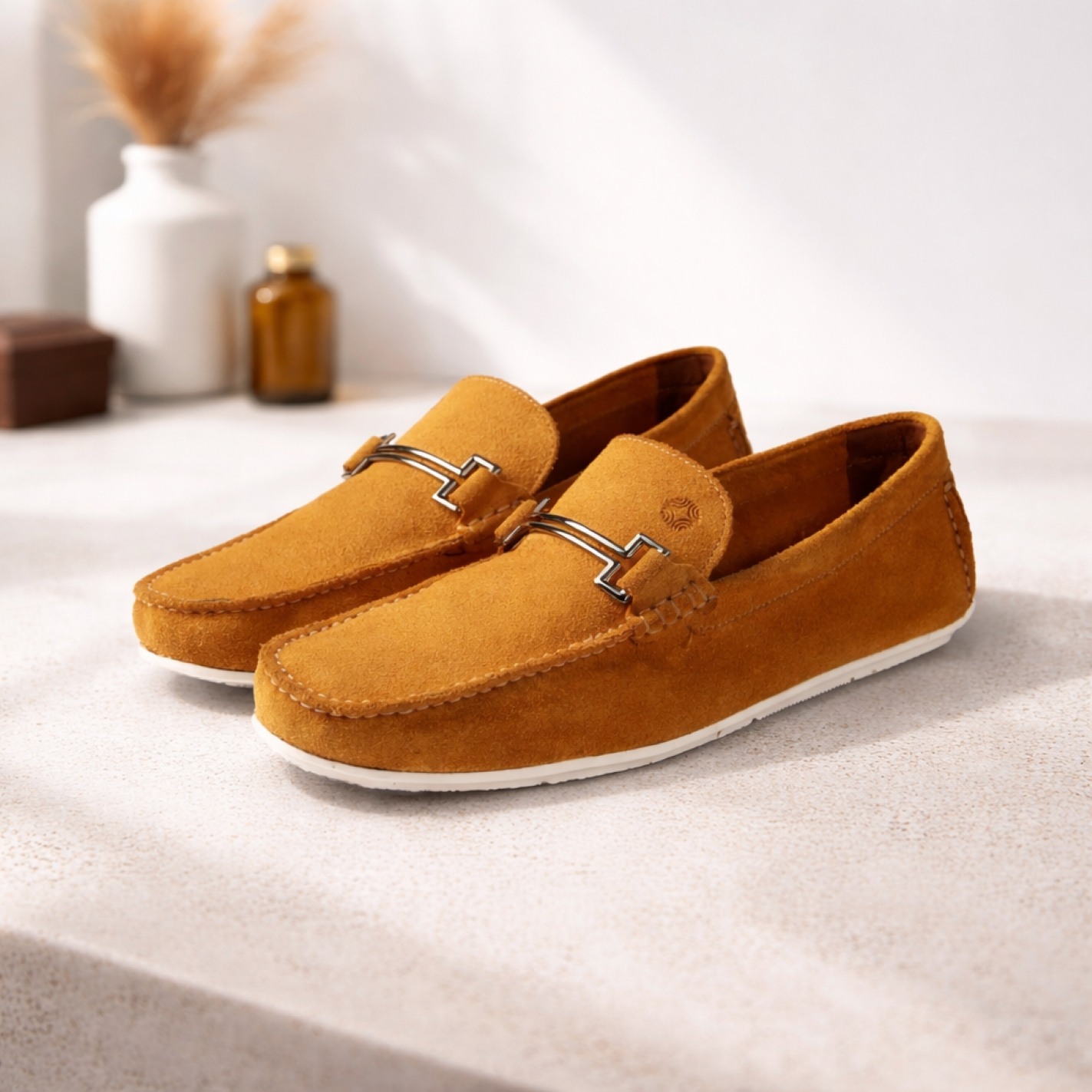Step into effortless elegance with Yellow Driver slip-ons in rich suede leather. The soft finish adds a touch of laid-back luxury. Set on a Eva sole for dependable comfort and durability. Ideal for stylish drives and smart casual days out.