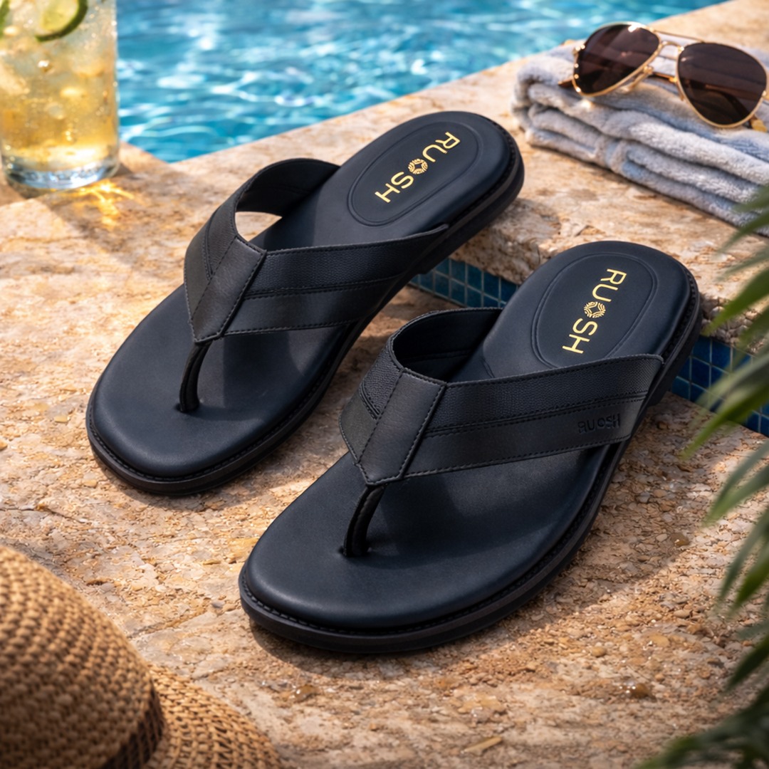 Add a classic touch to your wardrobe with Ruosh Navy Sandals made from genuine leather. Lightweight EVA sole enhances flexibility and comfort. Secure fit with a relaxed feel. Ideal for laid-back, stylish looks.