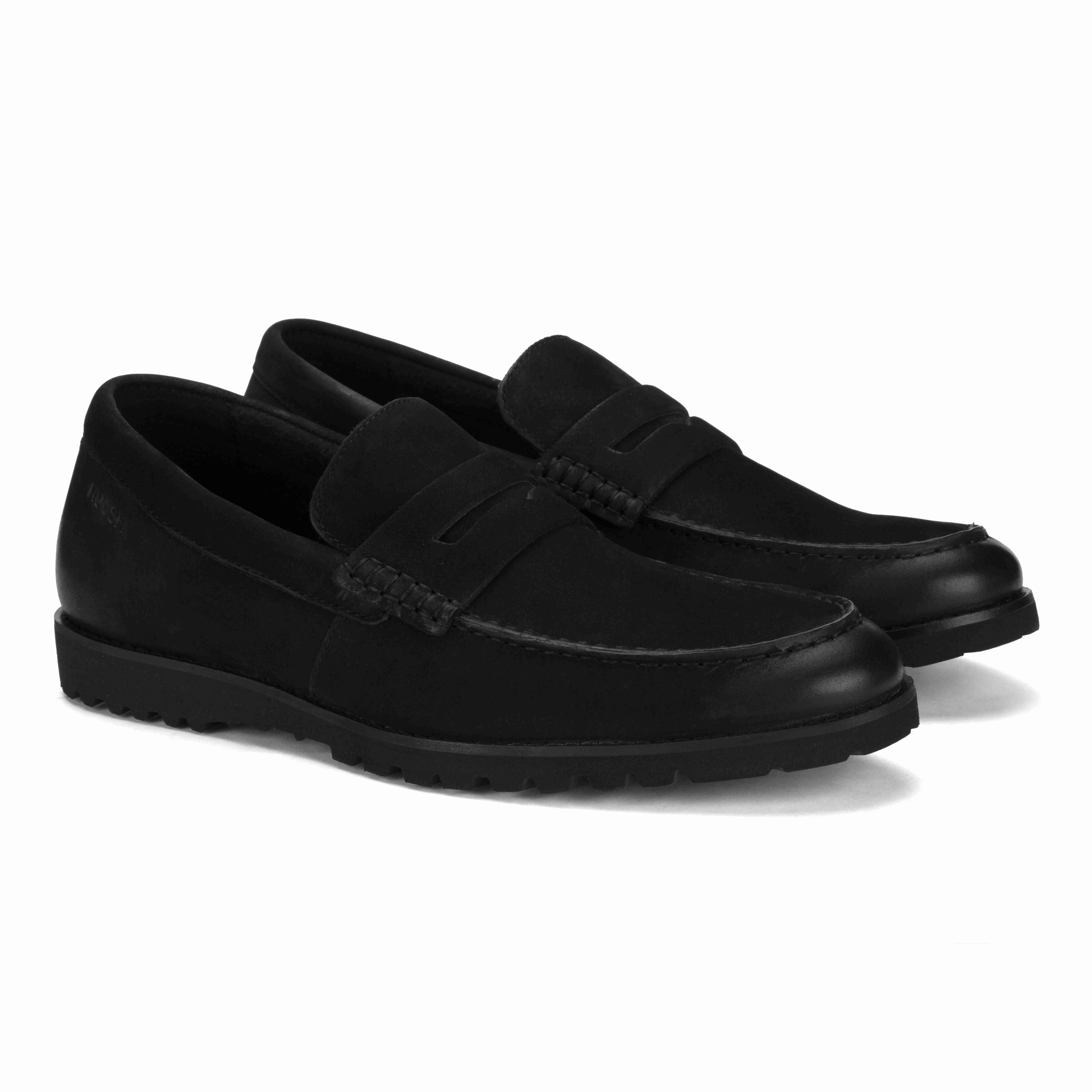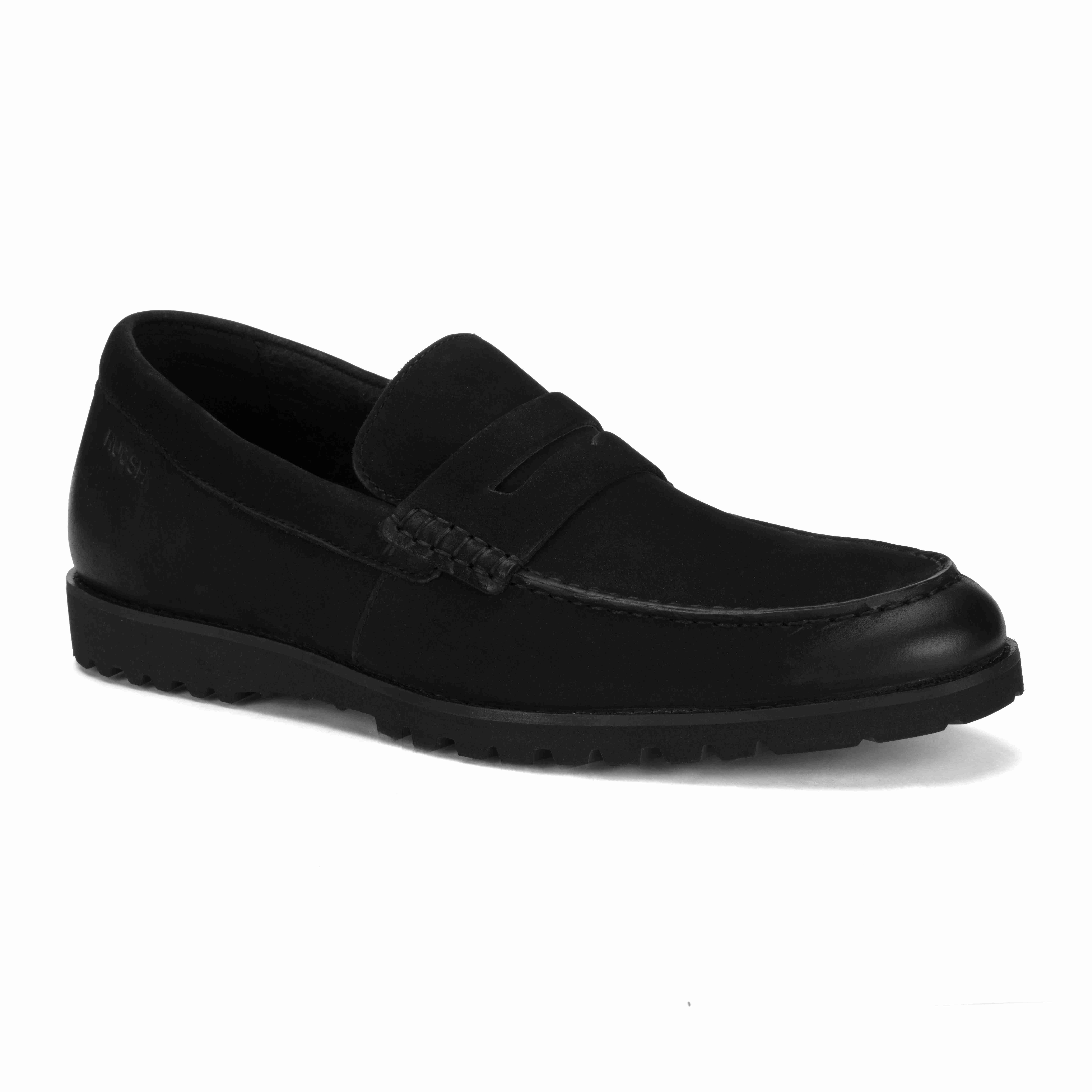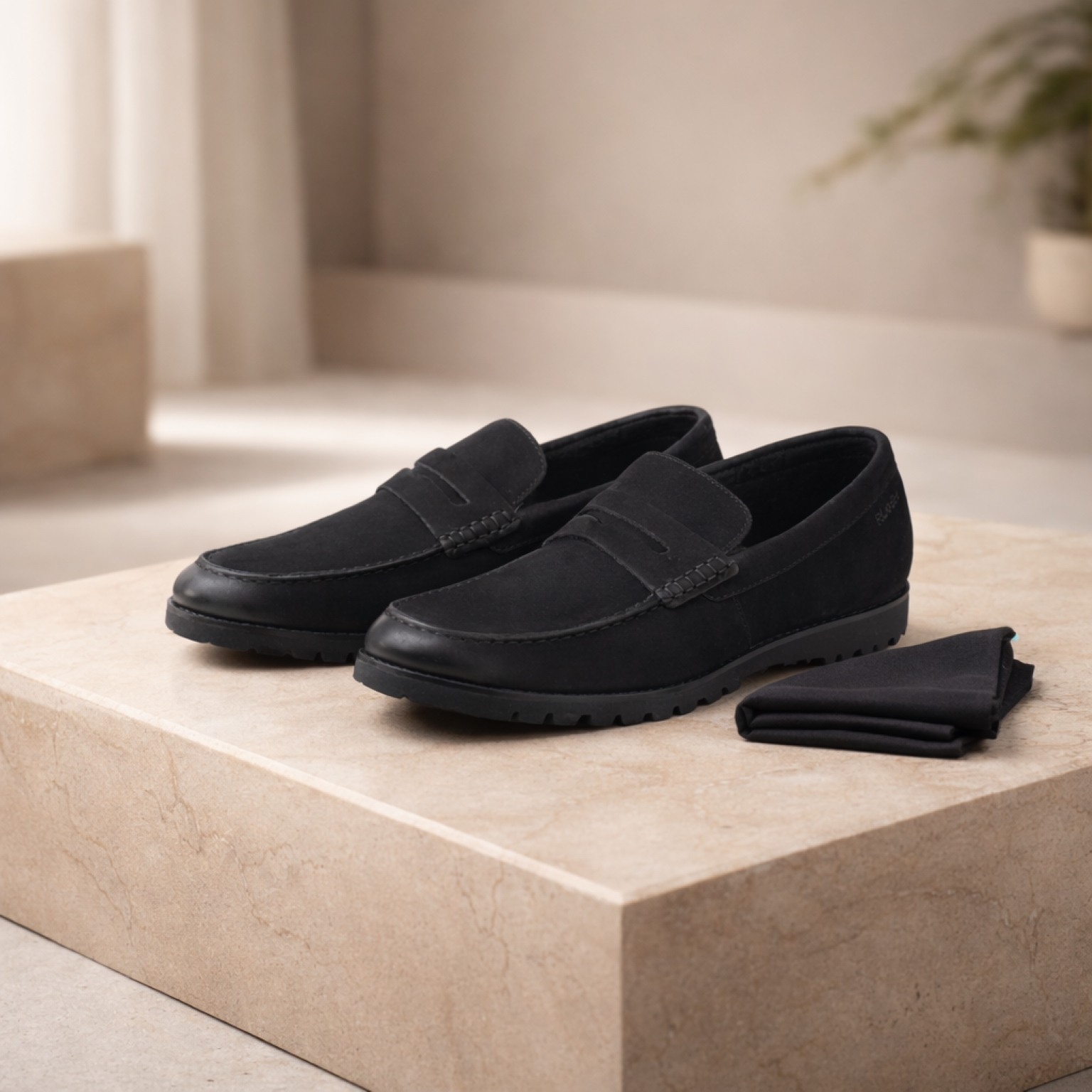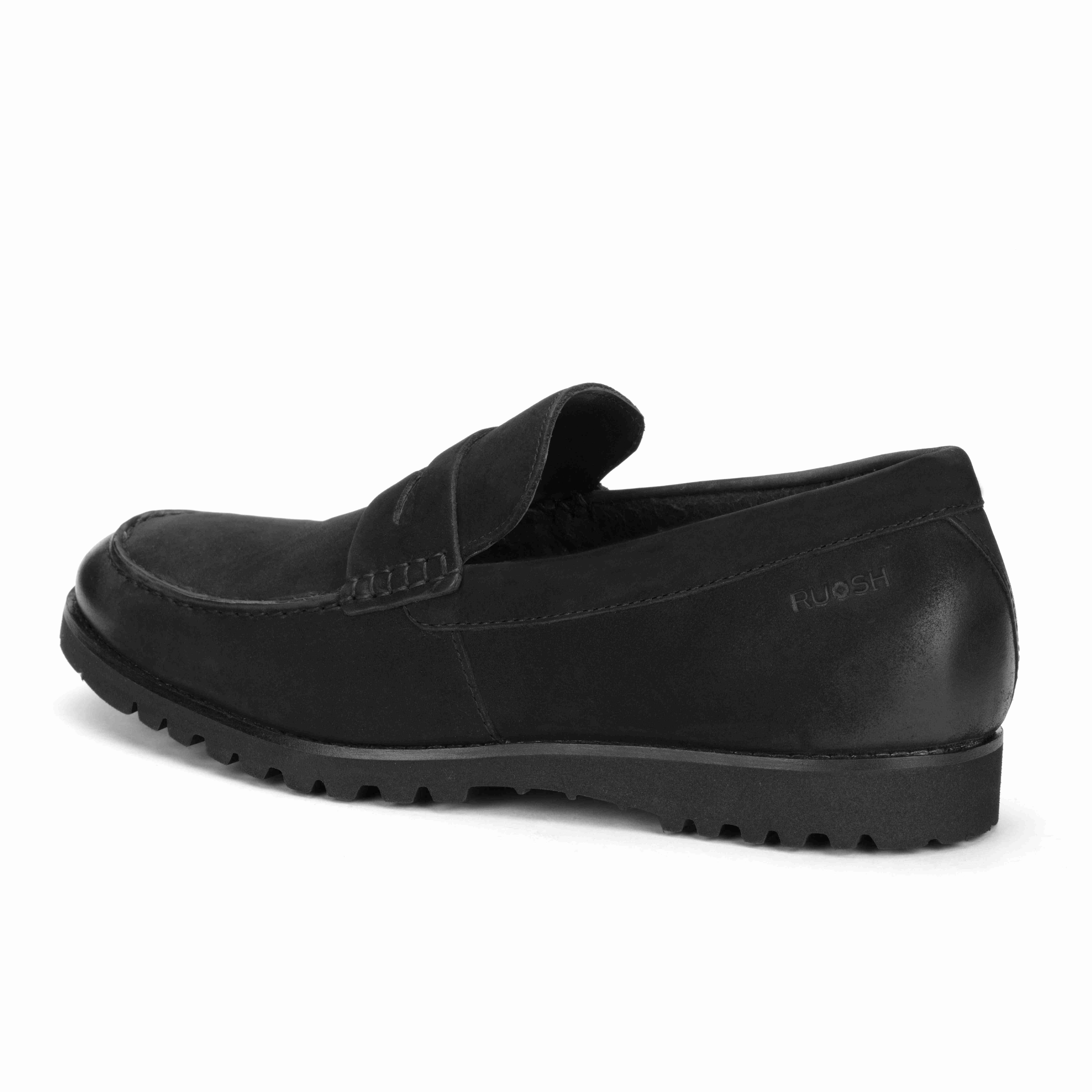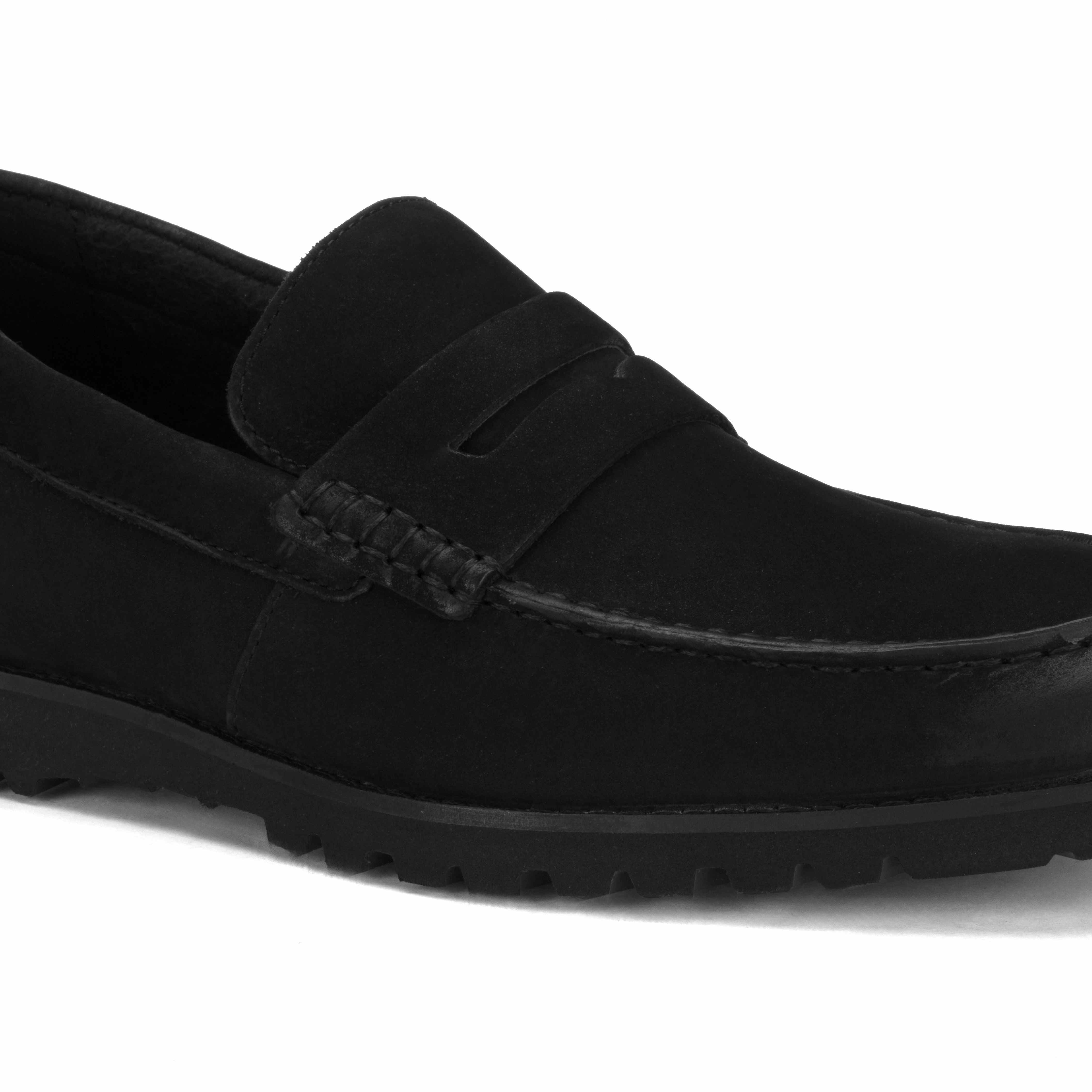 Stay comfortable and stylish with Ruosh Black Nubuck Penny Loafers. The soft nubuck upper adds a sleek, modern look. Easy slip-on design ensures effortless wear and all-day comfort. Lightweight EVA sole provides flexibility, cushioning, and reliable grip.