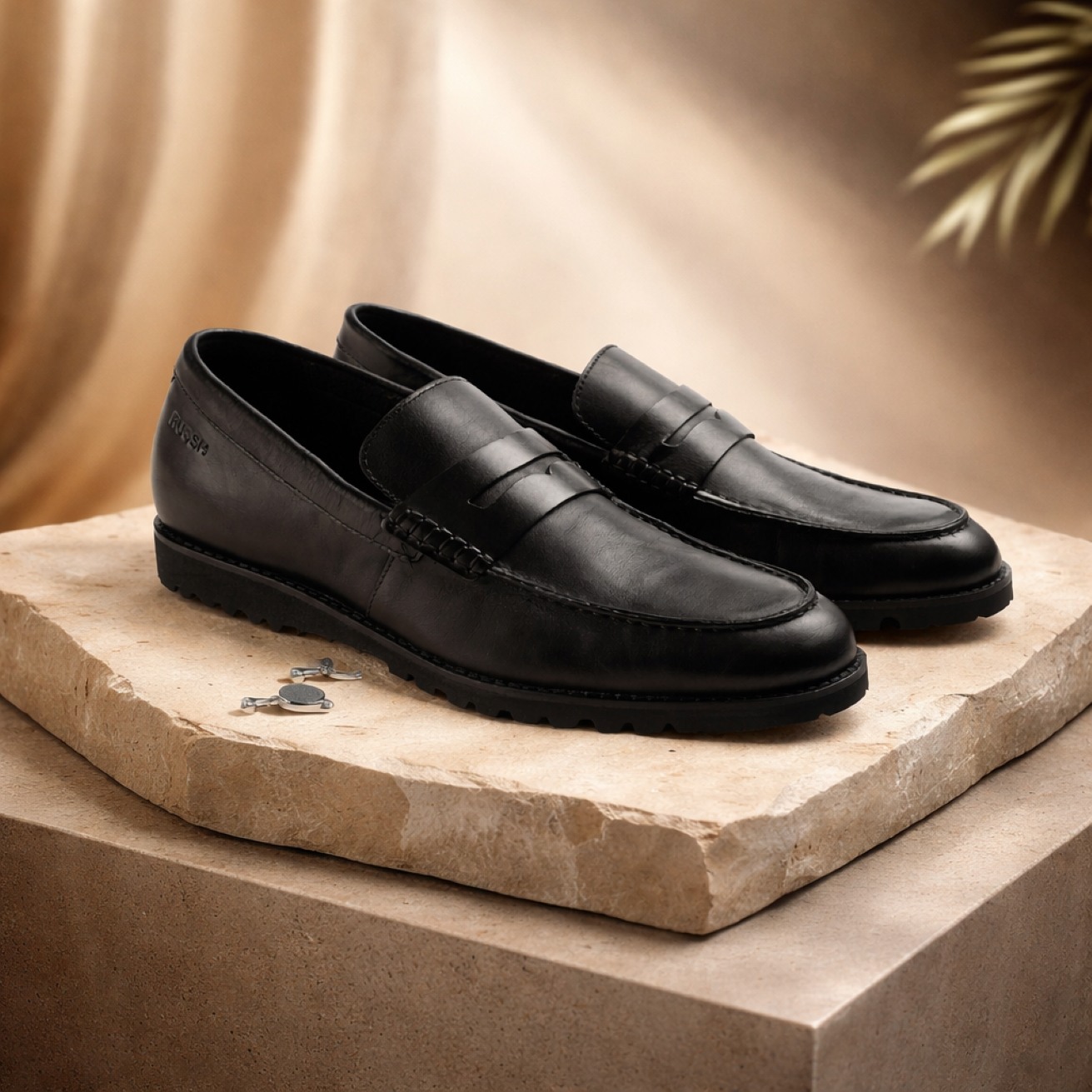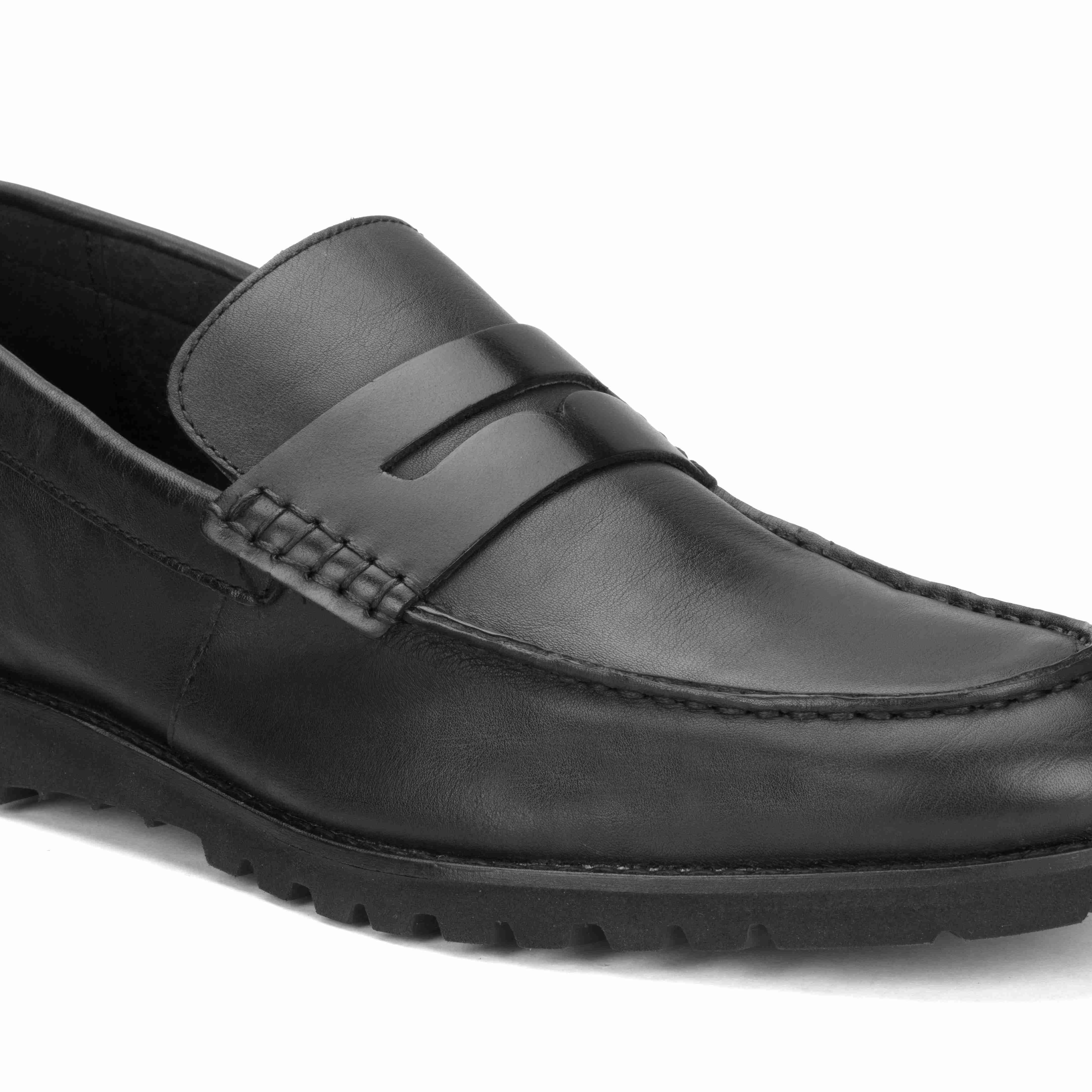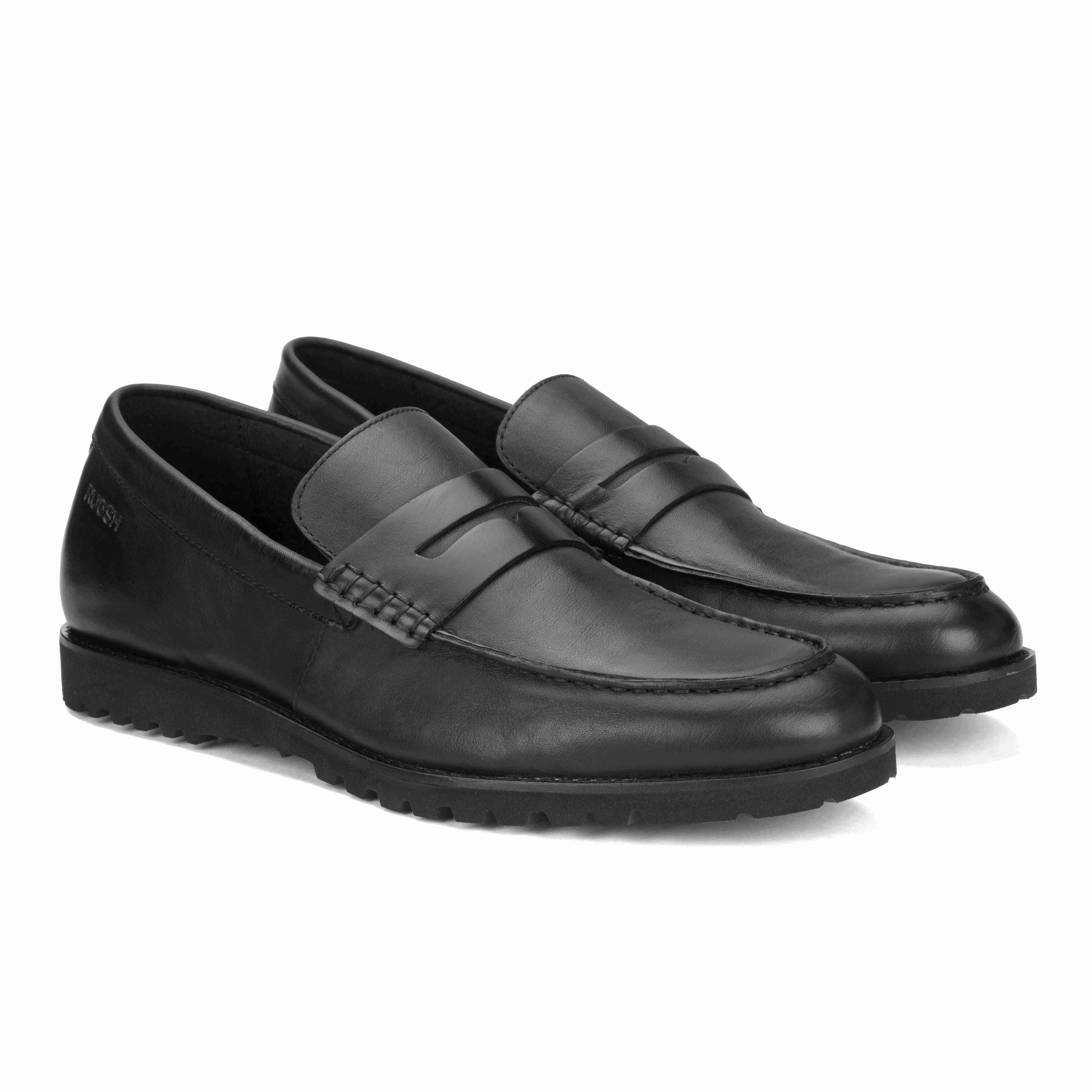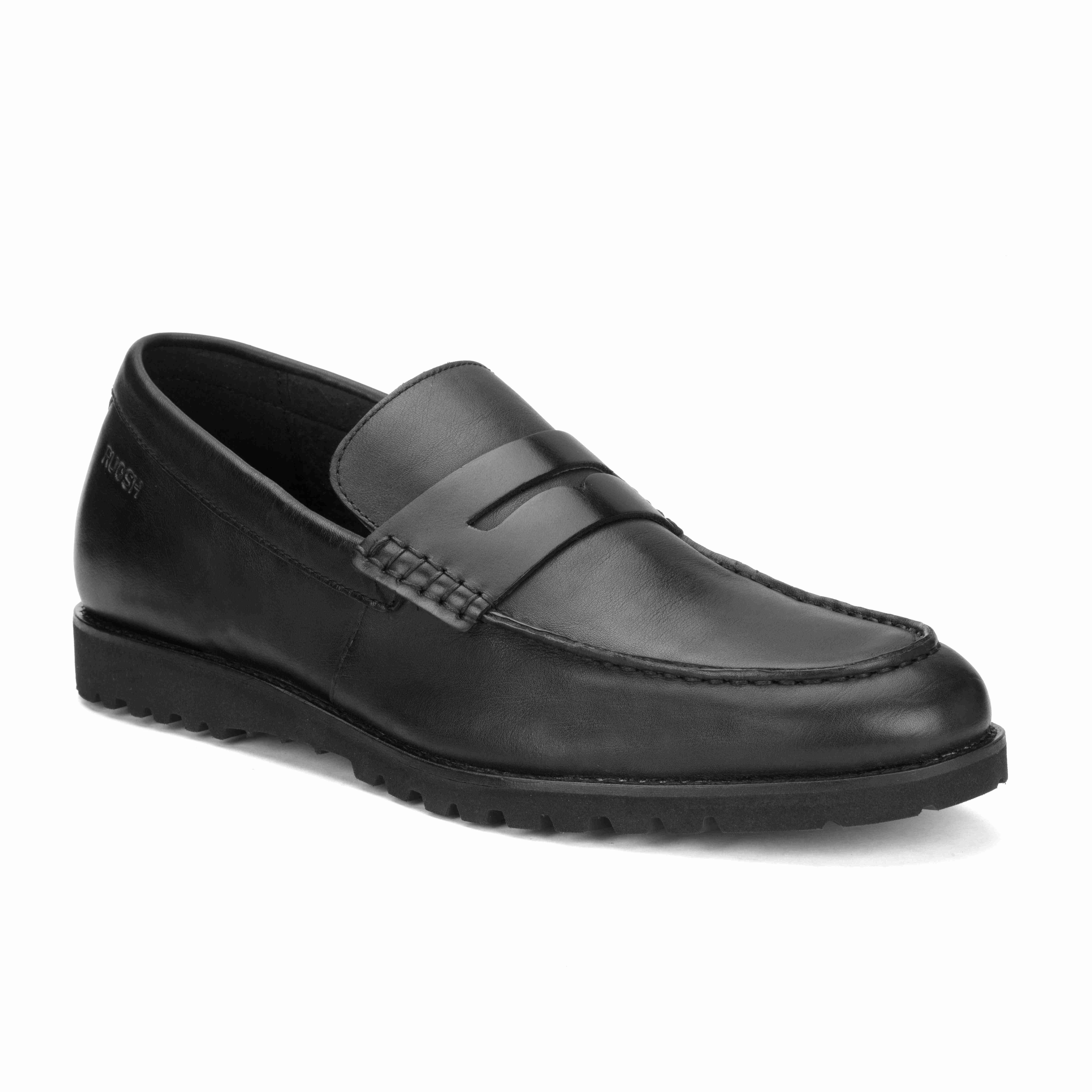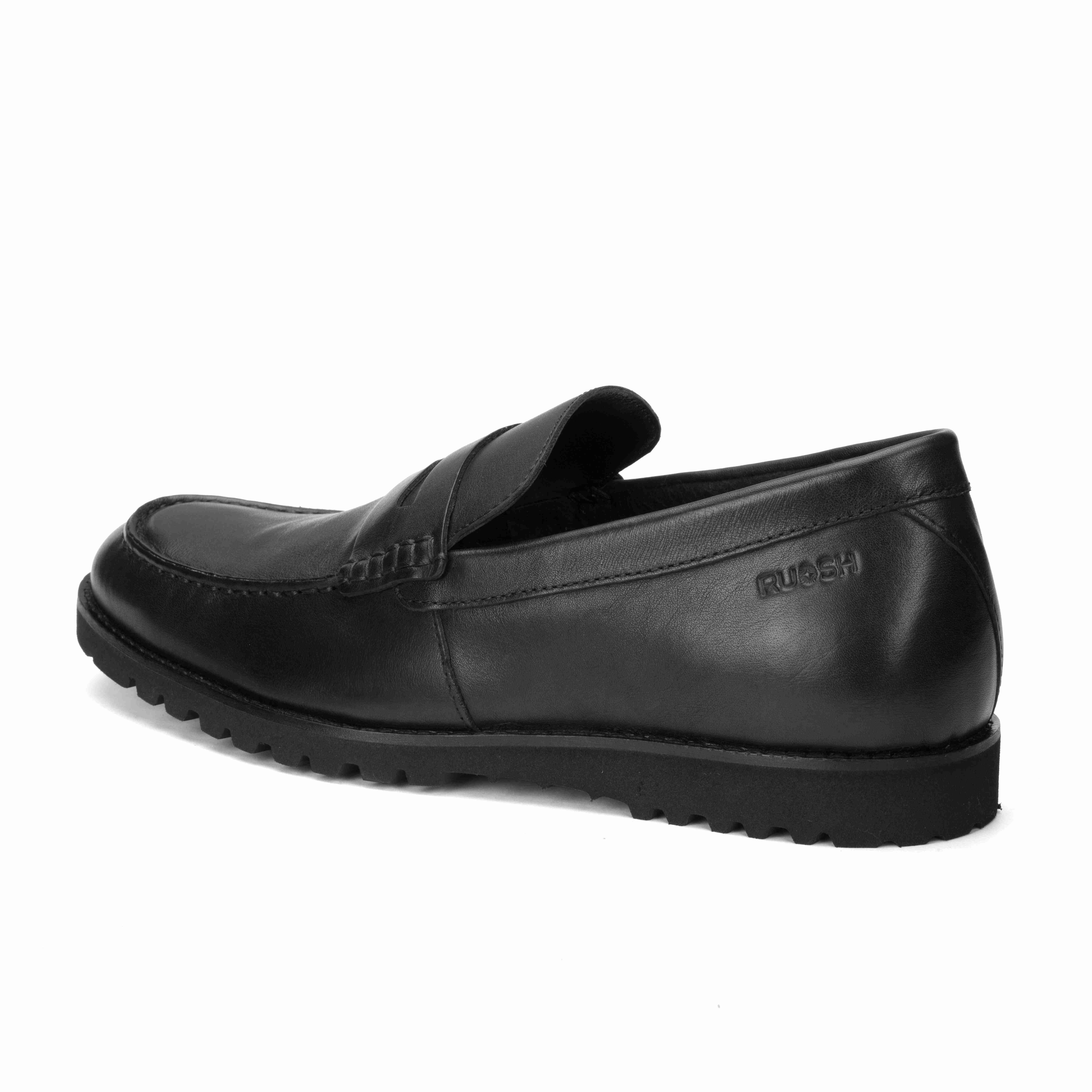 Stay stylish and comfortable with Ruosh Black Penny Loafers with milled leather. The textured milled leather upper adds durability and a refined look. Slip-on design ensures effortless wear and a secure fit. Lightweight EVA sole provides cushioning, flexibility, and reliable traction.