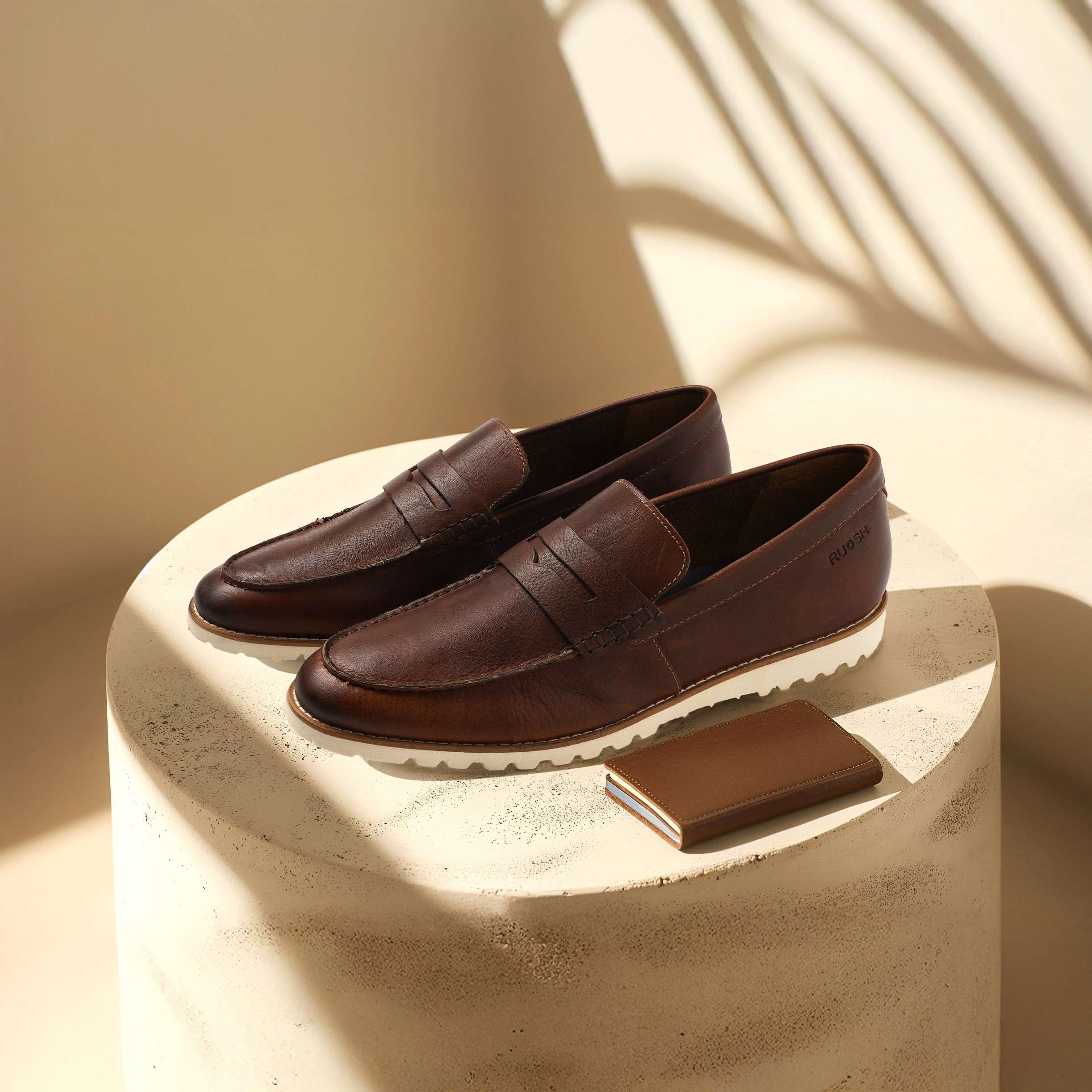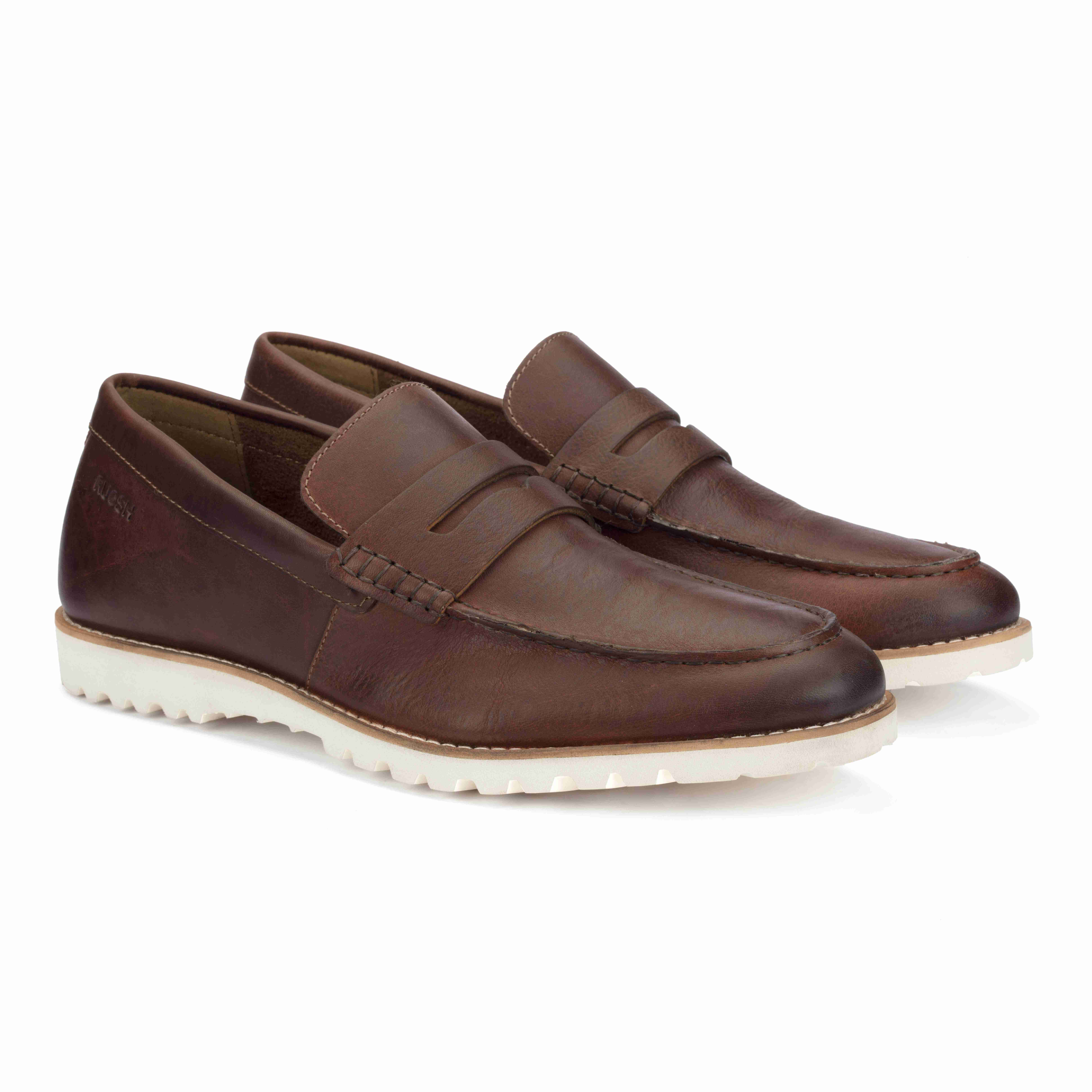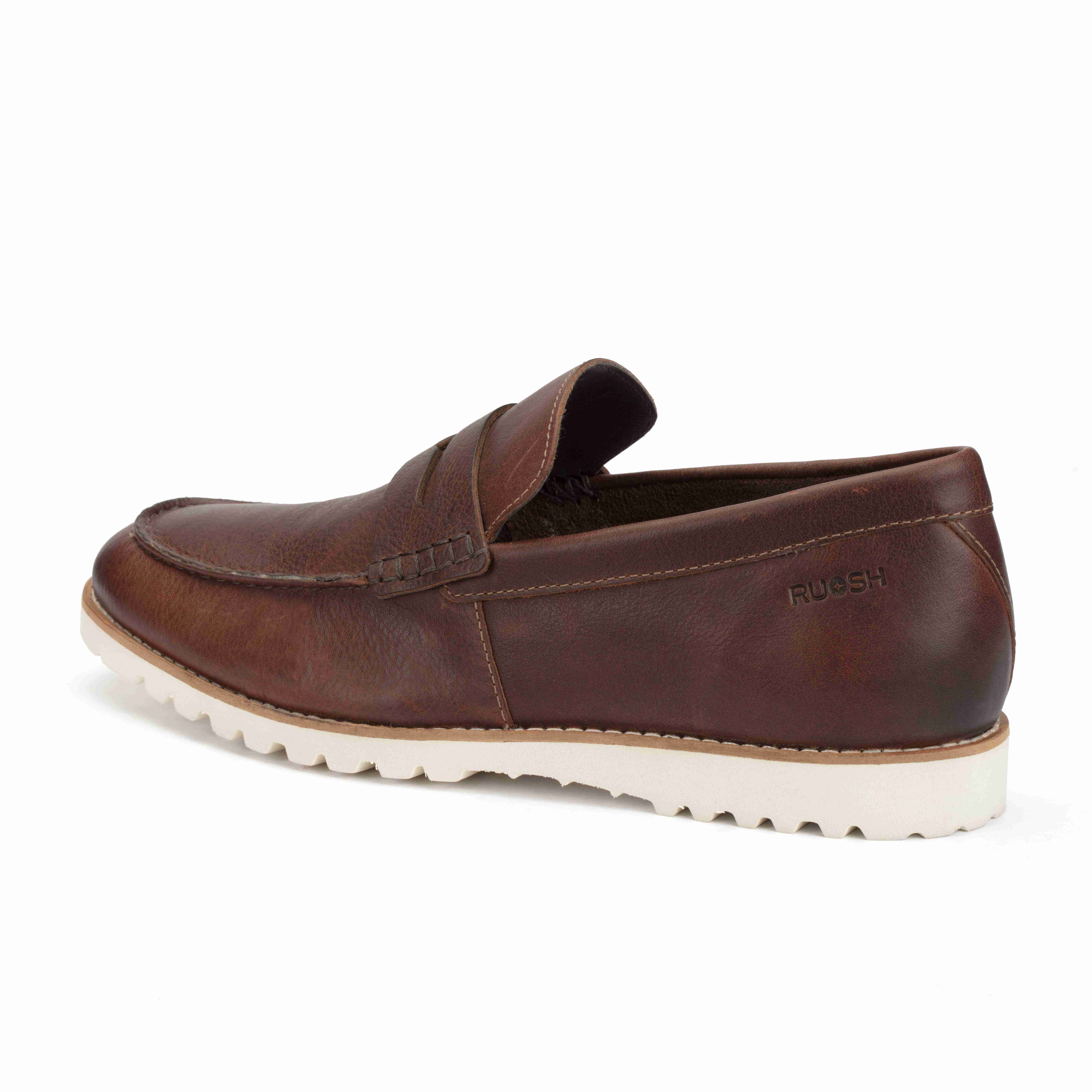 Upgrade your style with Ruosh Tan Penny Loafers crafted from premium nubuck leather. The rich texture delivers a smart and modern appeal. A lightweight EVA sole provides soft, all-day cushioning. Perfect for effortless comfort and refined casual wear.