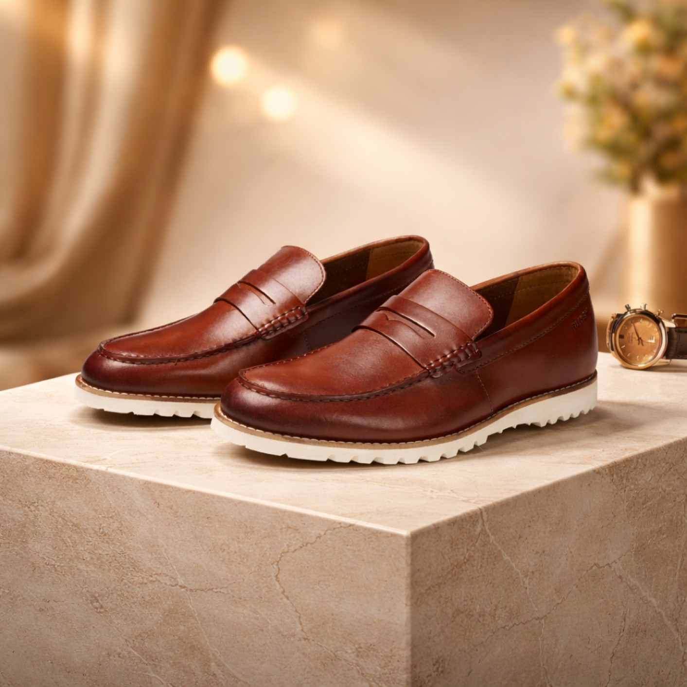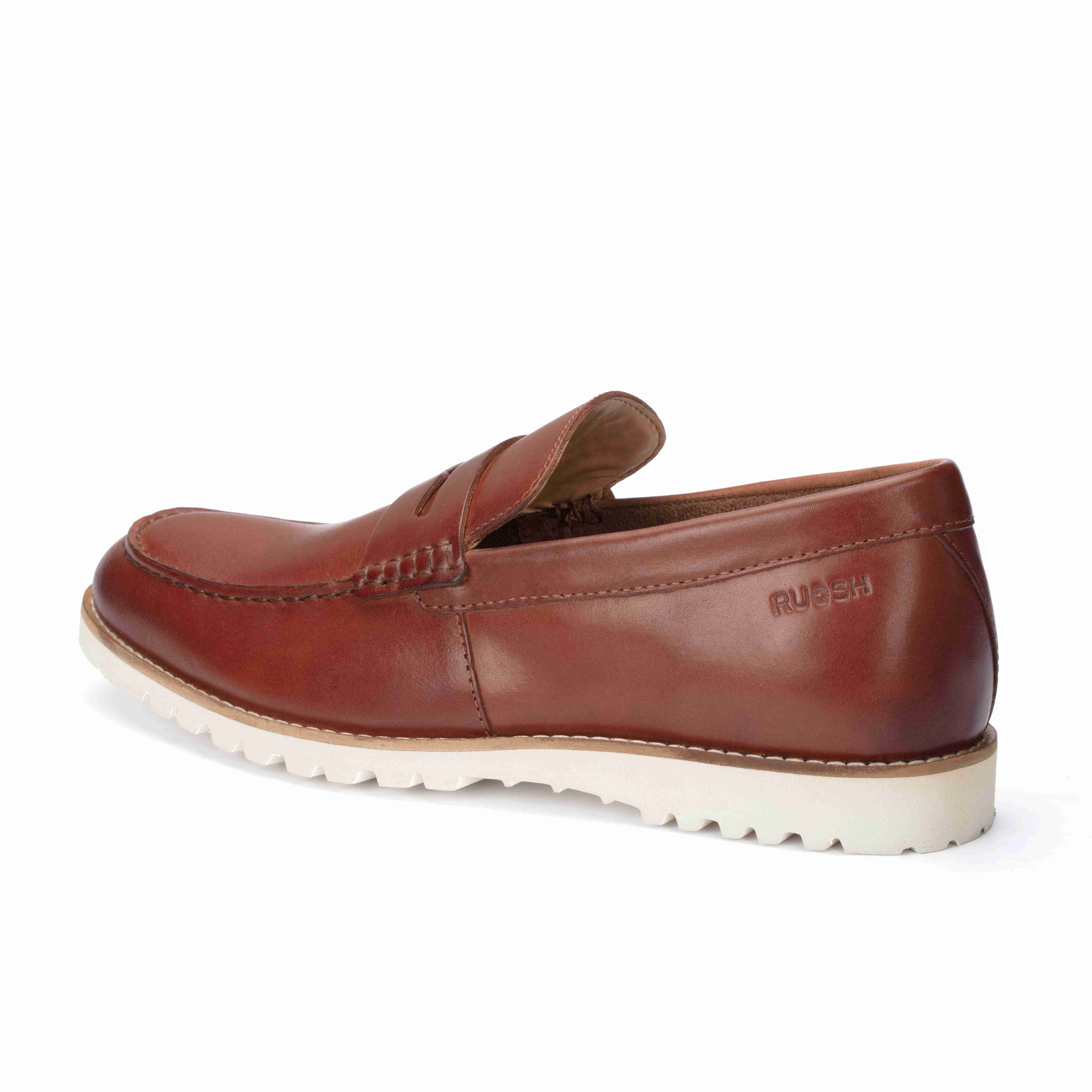 Step out in effortless style with Ruosh Tan Penny Loafers. The smooth leather upper offers a warm, versatile look. Slip-on design ensures easy wear and all-day comfort. Lightweight EVA sole provides cushioning, flexibility, and dependable grip.
