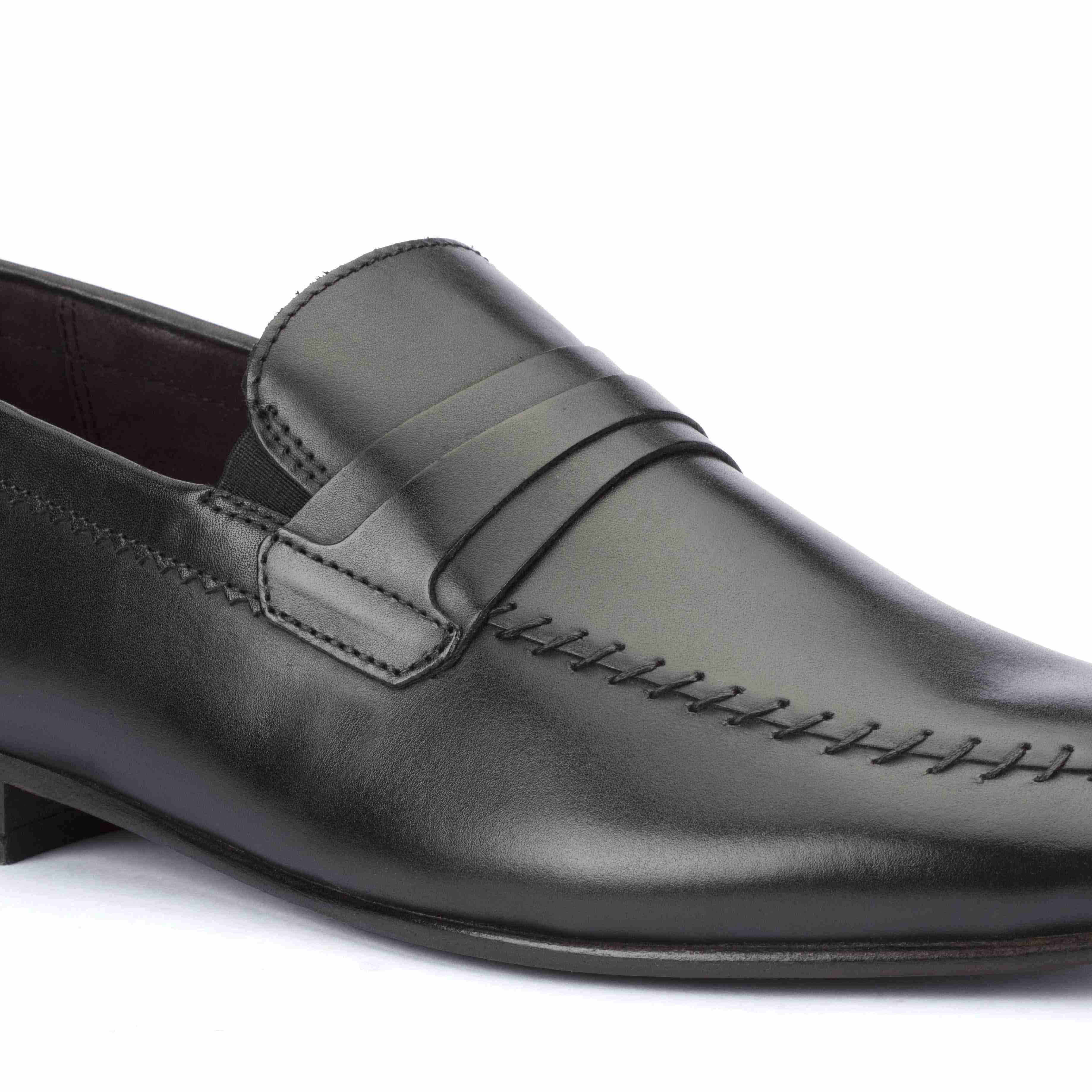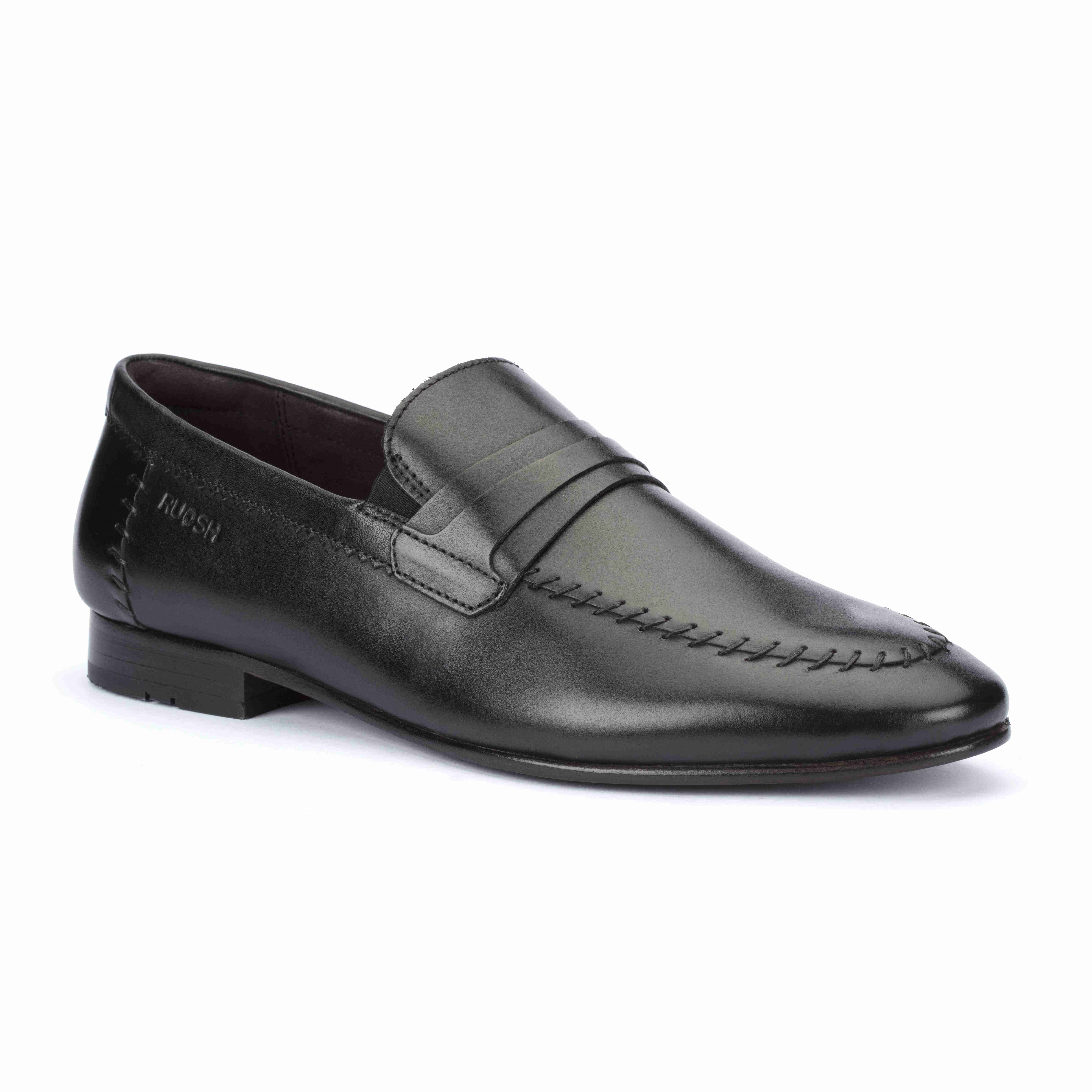 Ruosh Black Occasion Slip-on shoes crafted for a refined, timeless appeal. Features elegant saddle for added sophistication. Ideal for formal and occasion wear ensembles. Leather sole ensures classic comfort and lasting durability.