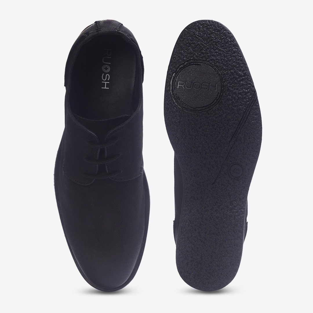 Elevate your casual style with Ruosh Black Suede Sneakers. Crafted from genuine suede leather for a refined finish. Durable TPR sole ensures reliable grip and comfort. Perfect for modern, effortlessly stylish looks.