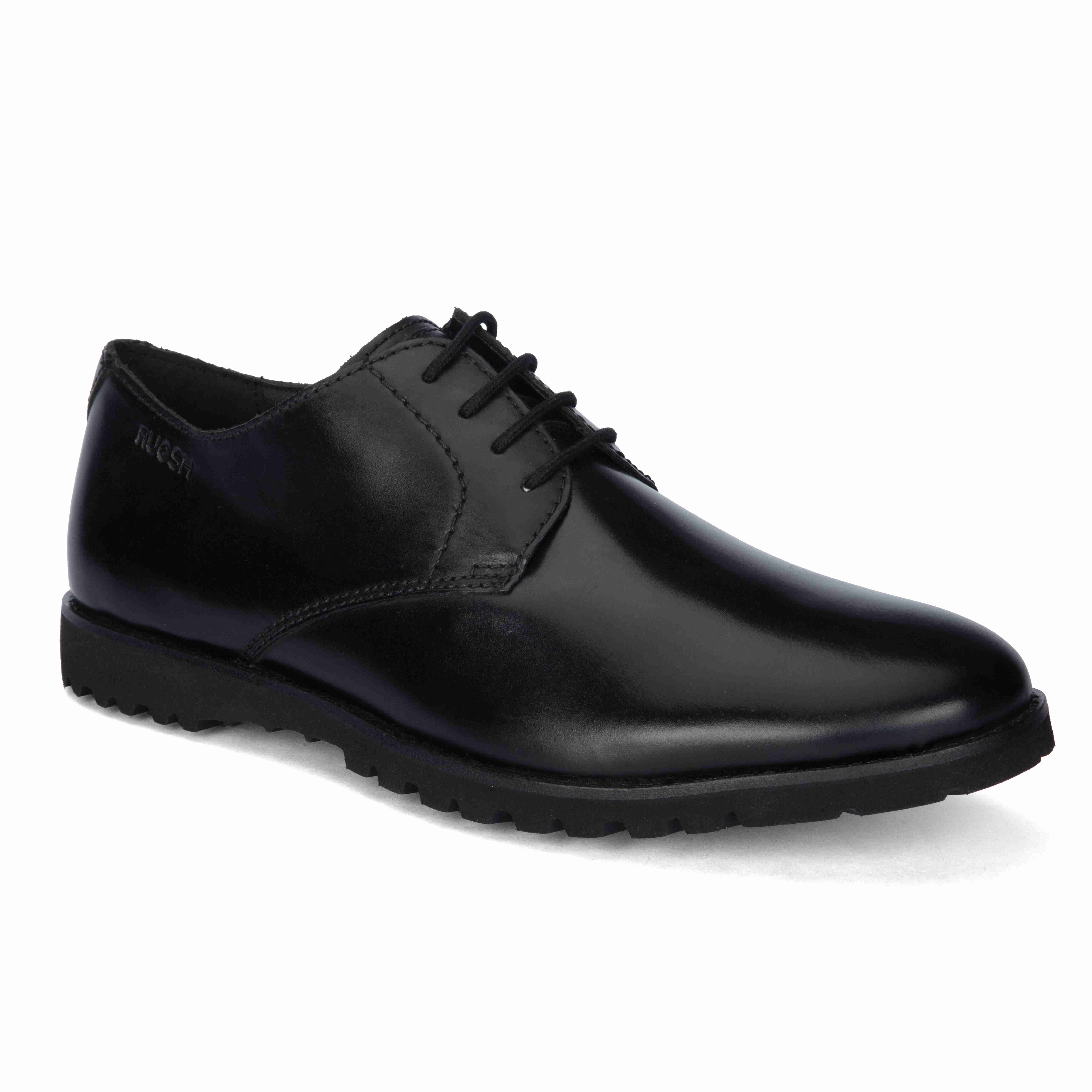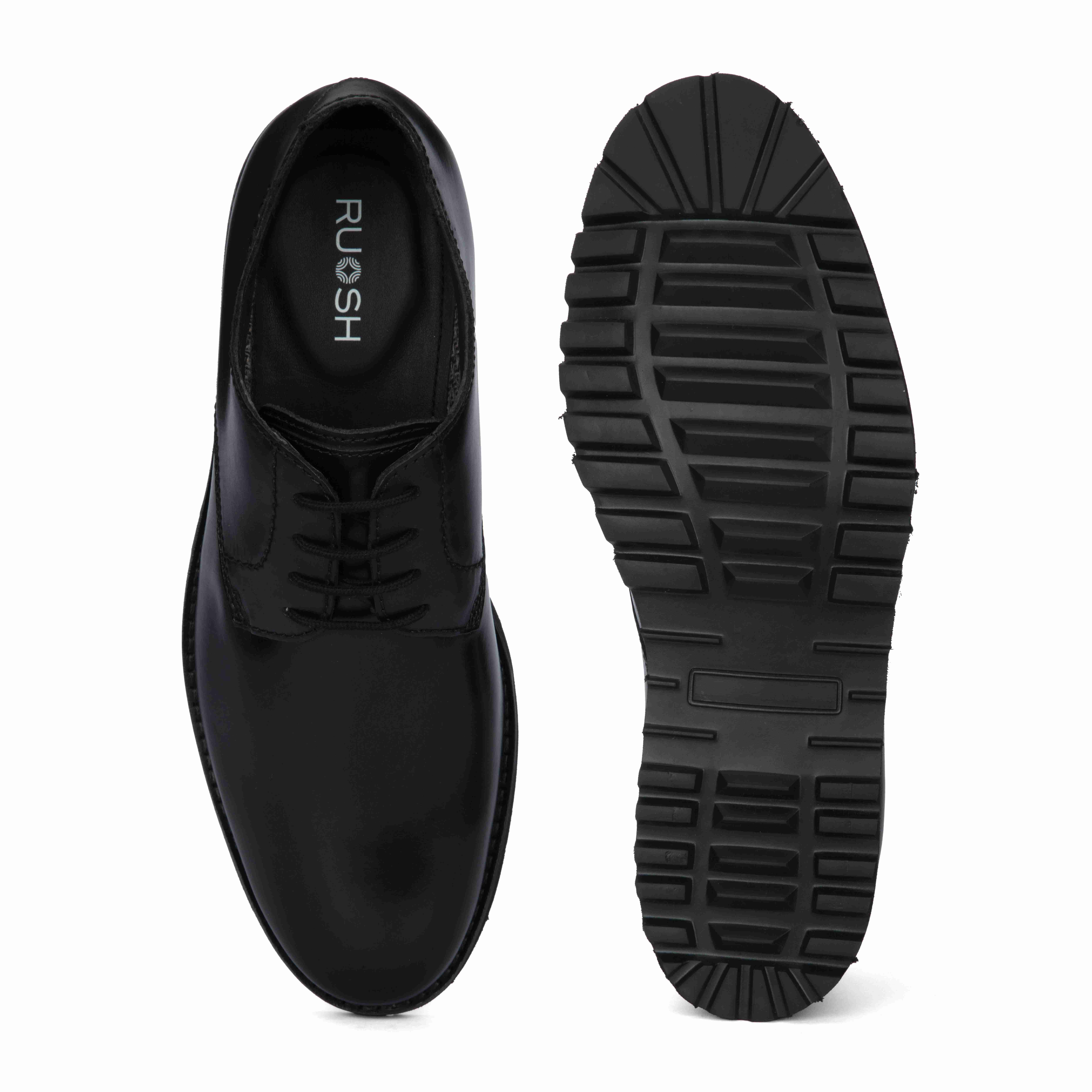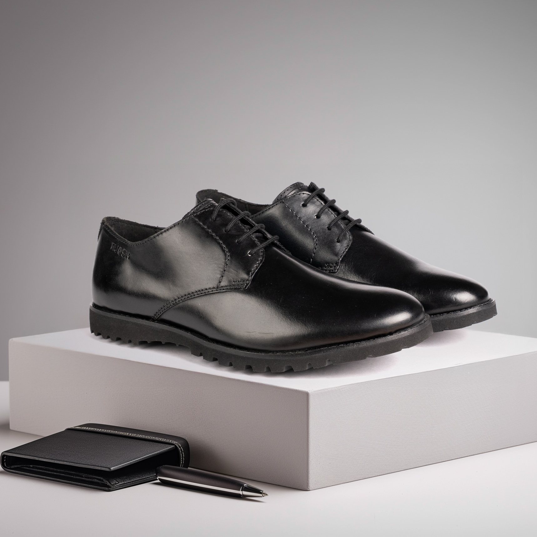 Built for timeless appeal, these black semi-boots are crafted from genuine leather for durability and sleek sophistication. The lace-up design ensures a secure fit, making them perfect for both urban commutes and smart-casual occasions.