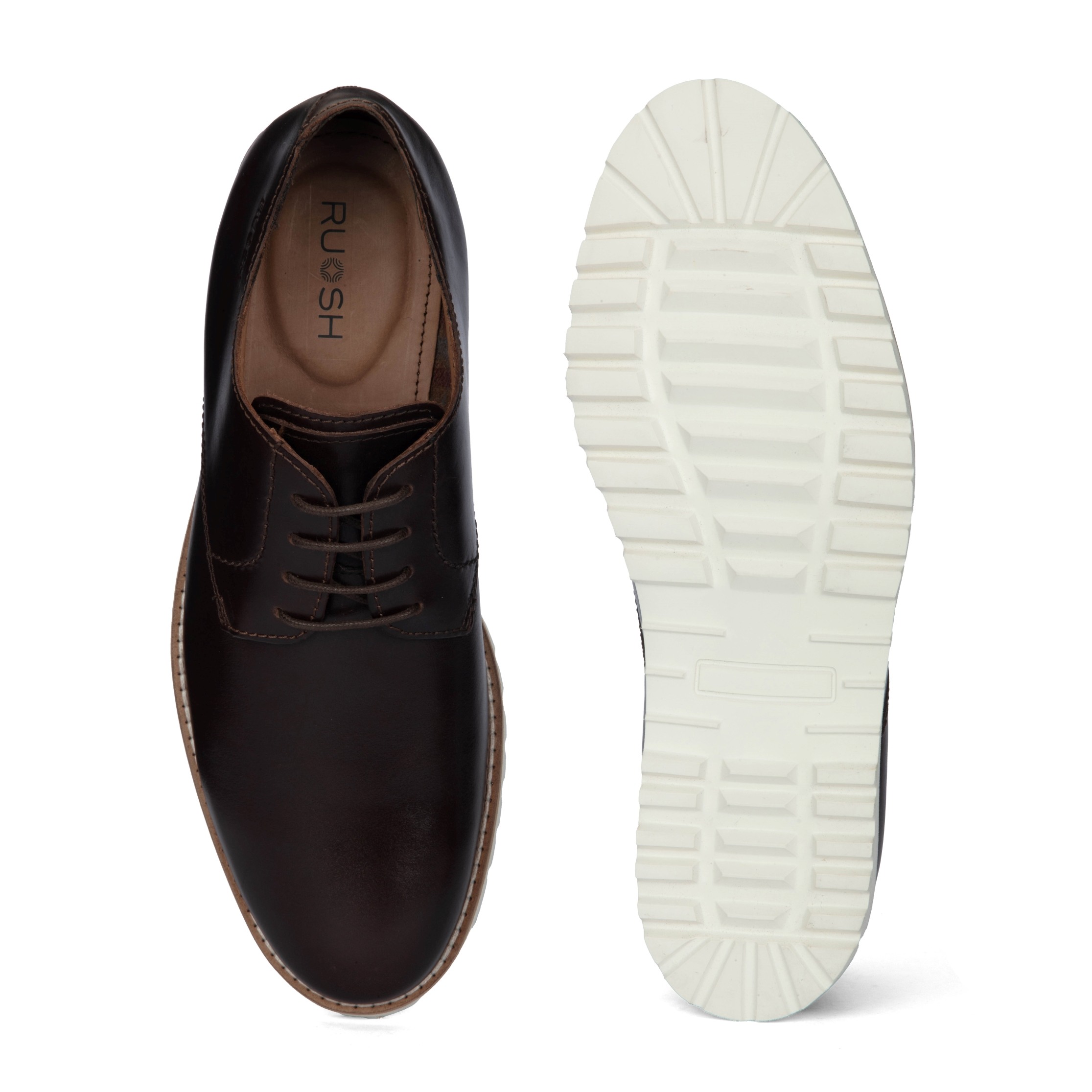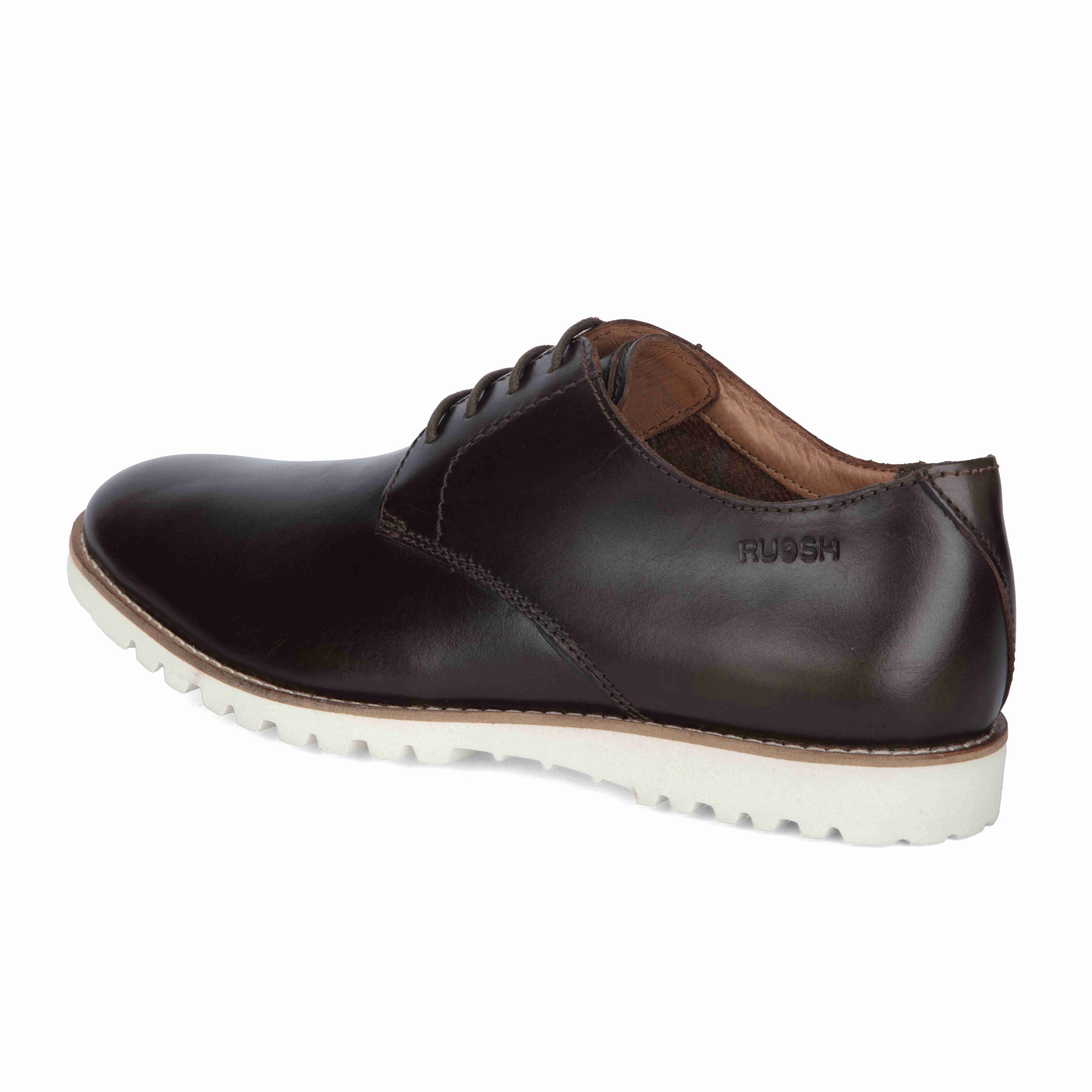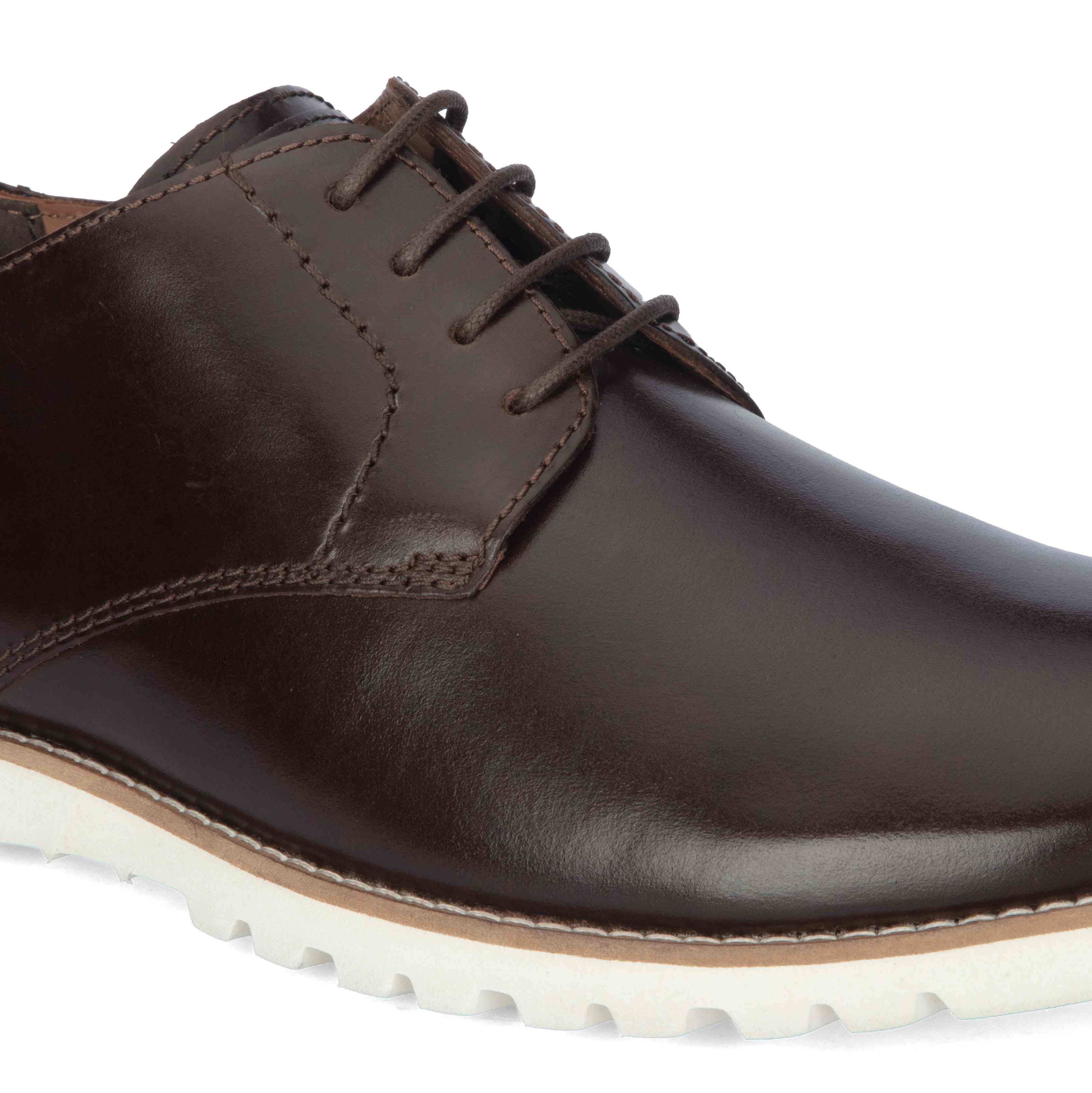 Classic craftsmanship meets modern design in these dark brown genuine leather semi-boots. The smooth finish is complemented by a bold white sole, creating a contemporary look with enduring appeal.