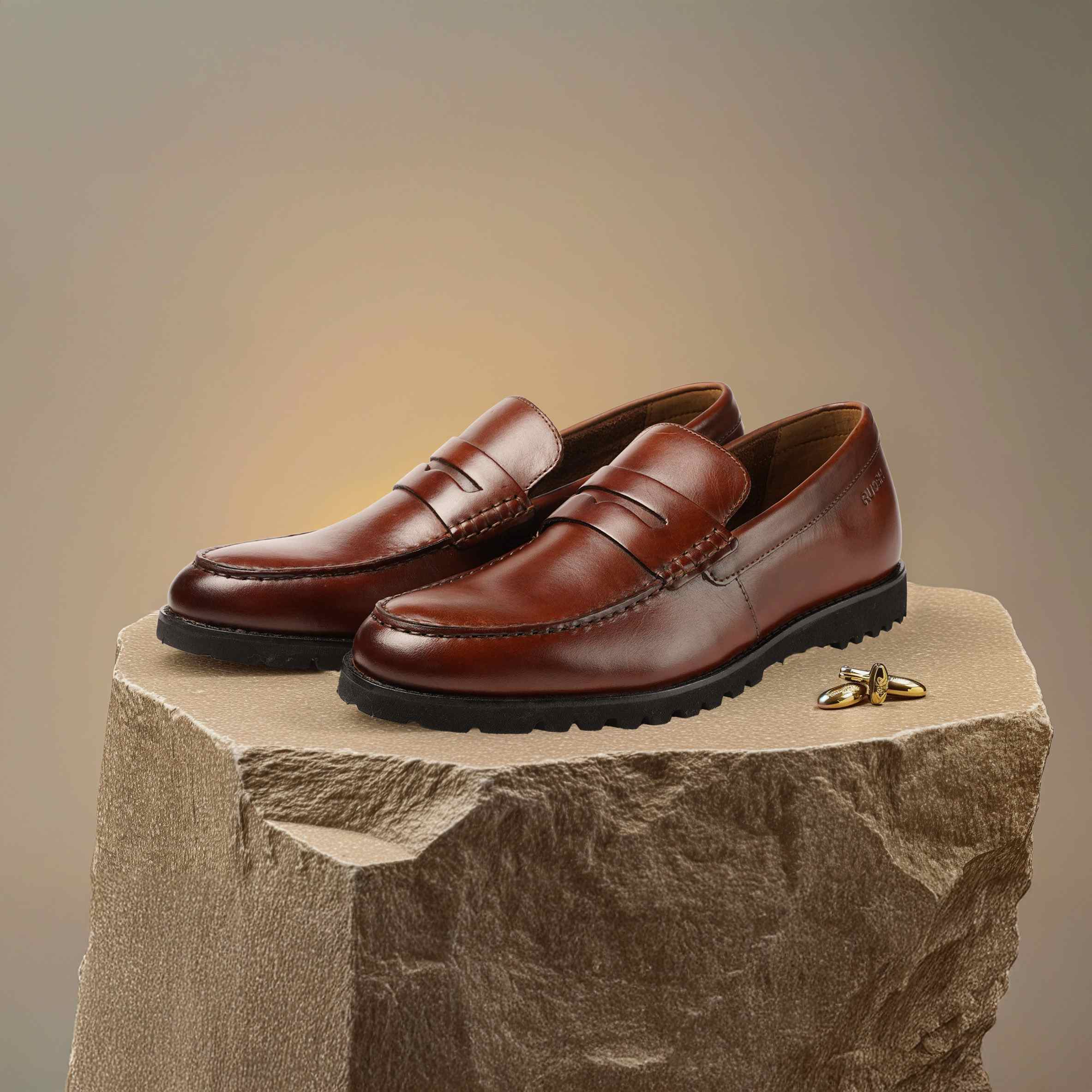 Step into casual style with Ruosh Brown Penny Loafers. The smooth leather upper offers a classic, versatile look. Easy slip-on design ensures comfort and hassle-free wear. Lightweight EVA sole provides cushioning, flexibility, and reliable grip.
