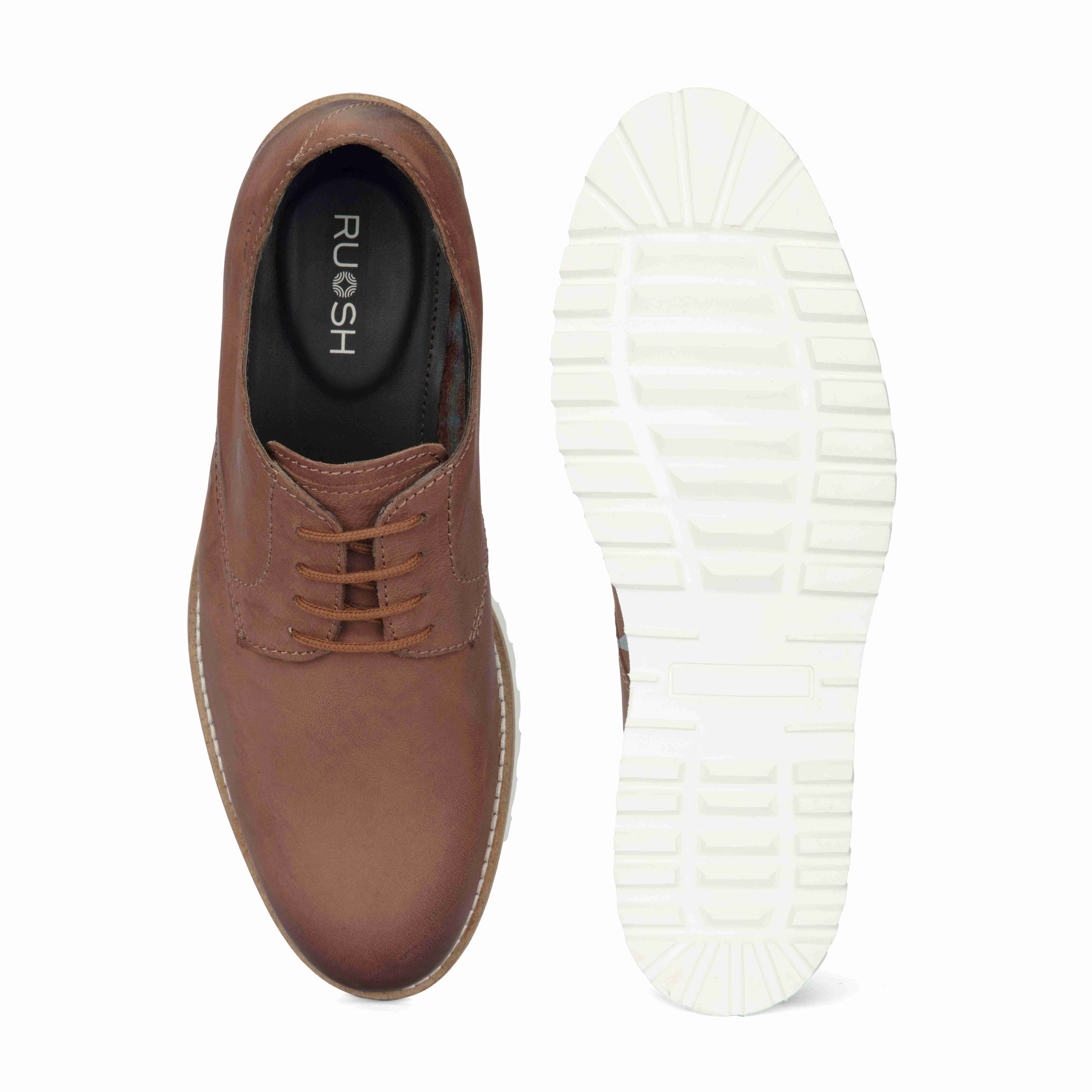Make a refined statement with these tan brown semi-boots. Crafted from high-quality genuine leather, they feature a modern white sole for contrast and a polished finish that works seamlessly from day to night.