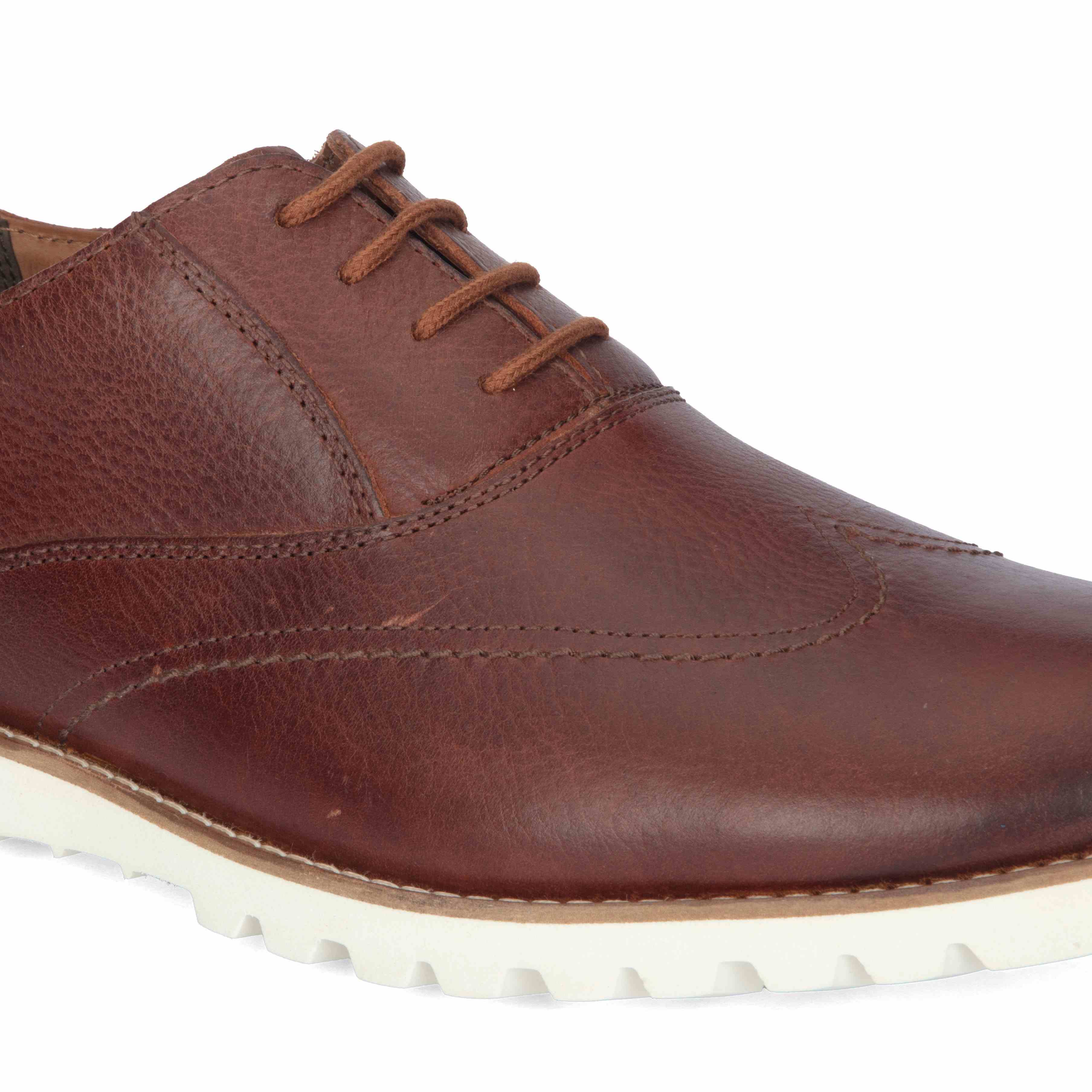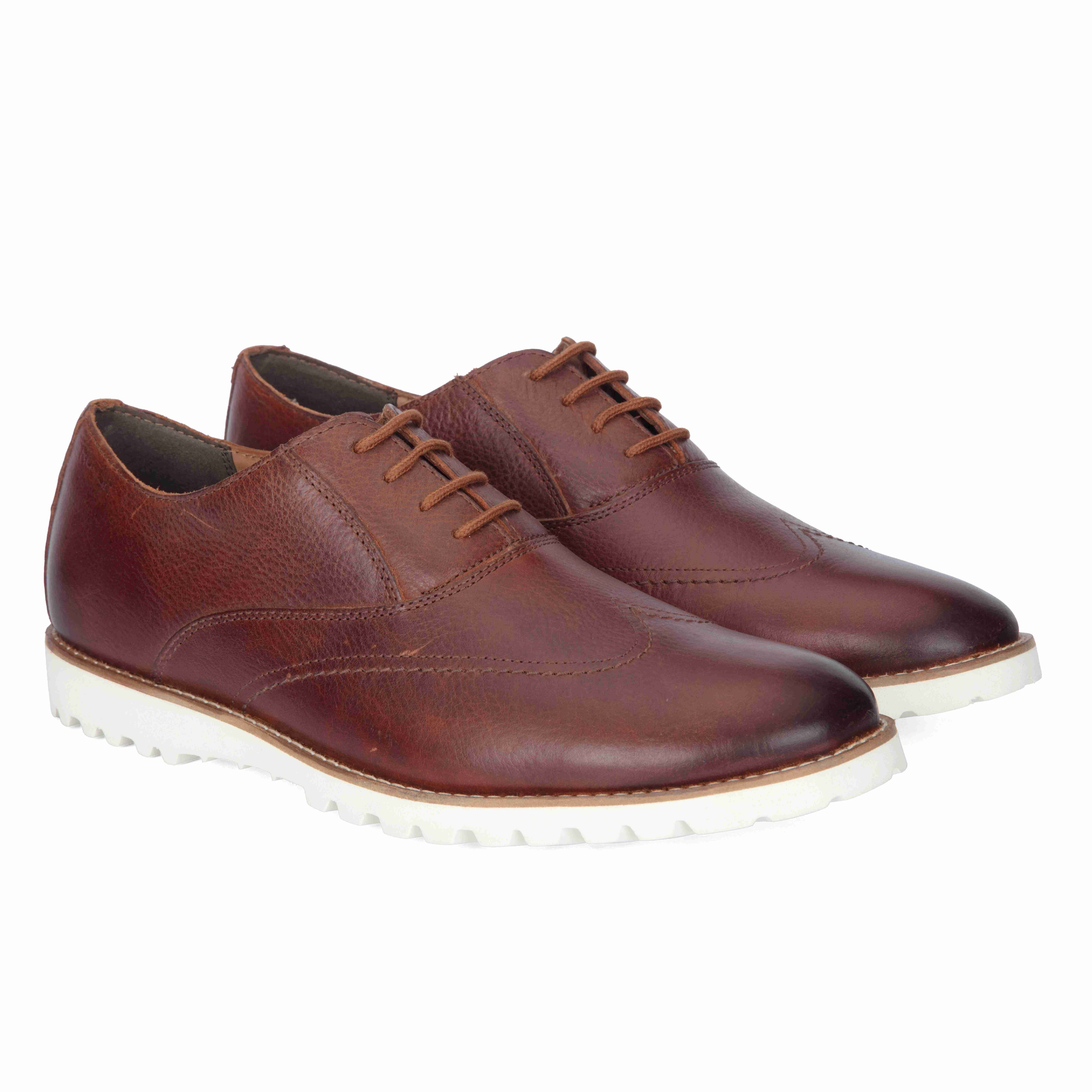 Elevate your style with these dark tan semi-boots, crafted from genuine leather. Featuring fine stitch accents and a crisp white sole, they offer a modern take on classic craftsmanship for versatile, smart-casual dressing.